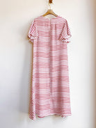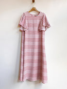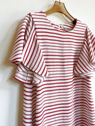 Red and White Stripe Chore Dress with Flutter Sleeve