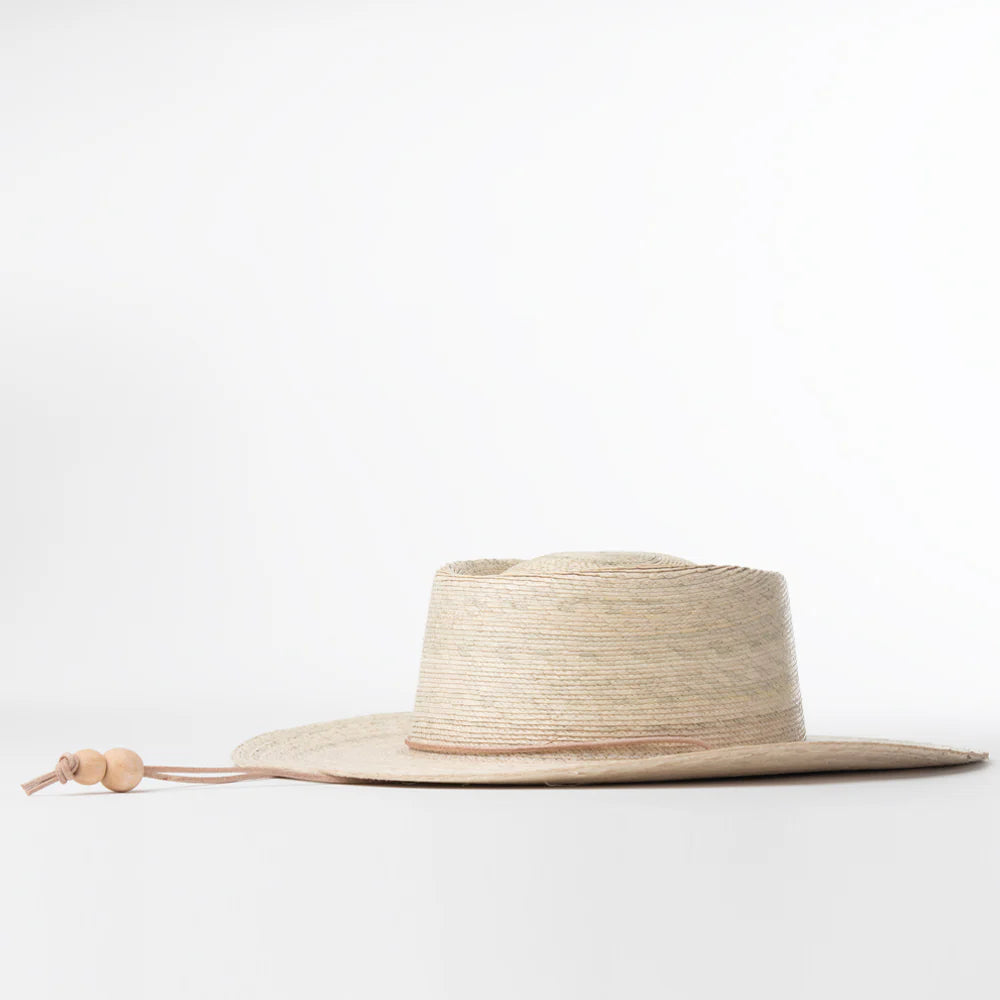 Fall in love with Per Lei’s newest favorite, the Reed straw hat - a telescope sunhat with a chinstrap for weekend getaways and windy days. Expertly handwoven from fine tripilla straw by Per Lei’s artisan partners in Central Mexico with added aqua dyed leather chinstrap and wooden adjustable bead detail.