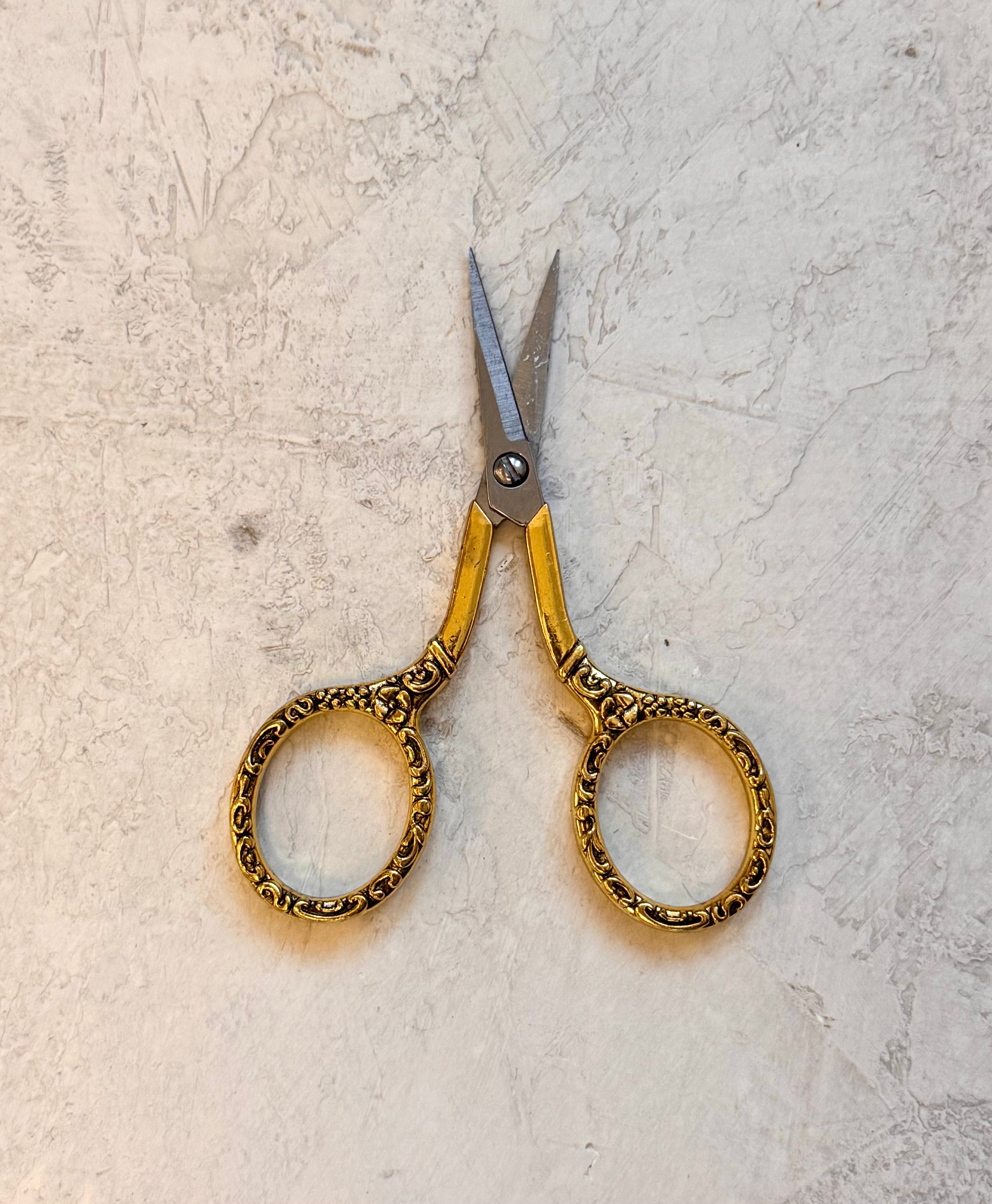 Small scissors have unlimited uses in crafting and every day use. Their shape helps get into small spaces and won’t obstruct your view. Their short sharp blades make it easy to trim loose threads, while being strong enough for sturdier projects. These small scissors have beautifully decorated handles and carrying case, with a sturdy chain necklace making them harder to lose.