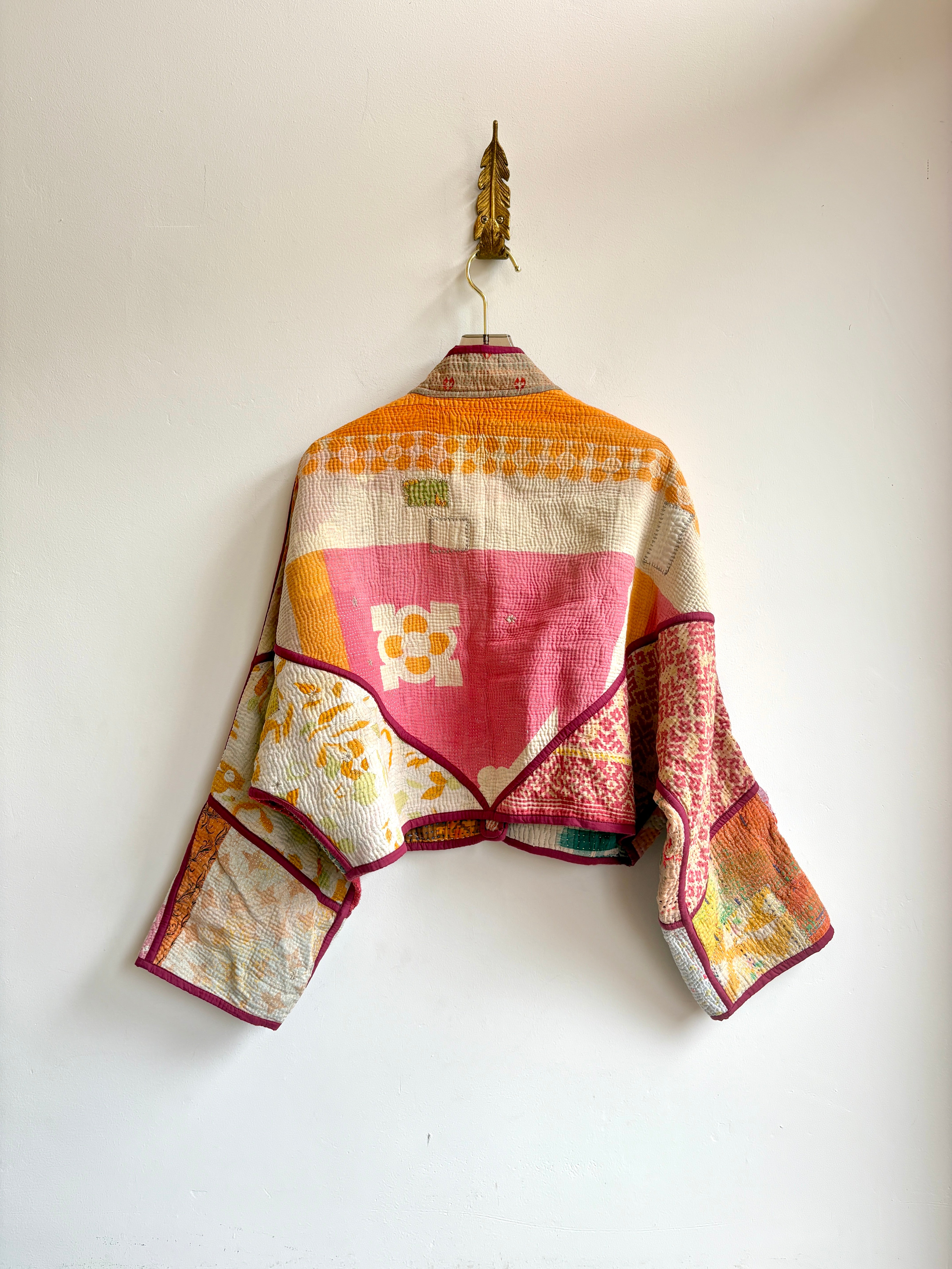 Reversible Kaira Quilted Cropped Jacket in Colors Orange, Pink, Yellow, Cream & Blush, Blue, Teal, Beige