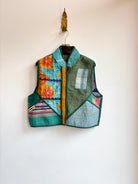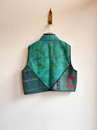 The Kaira Cropped Vest is made from repurposed Vintage Kantha quilts, and the original patina includes areas of fraying, patches and an age-softened feel.