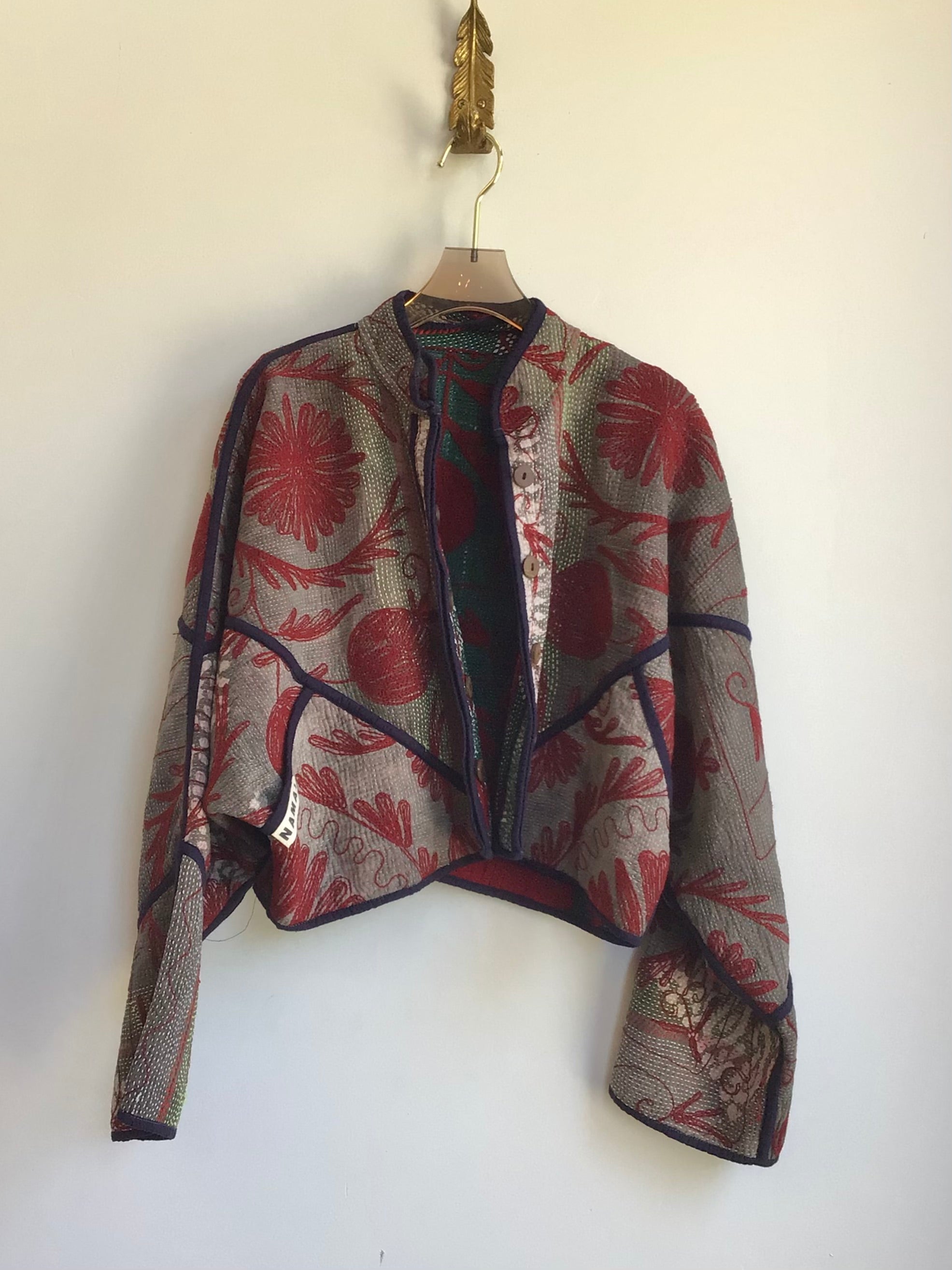 Namai jackets and accessories are designed in Kingston NY and handmade by family-run tailoring workshops in India. These one-of-a-kind pieces made from vintage Kantha quilts are timeless, zero waste and heirloom quality.
