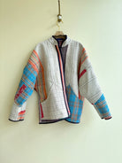 Reversible Ladhiya Quilted Jacket in Multicolored Stripe & White, Mauve, Blue, Peach