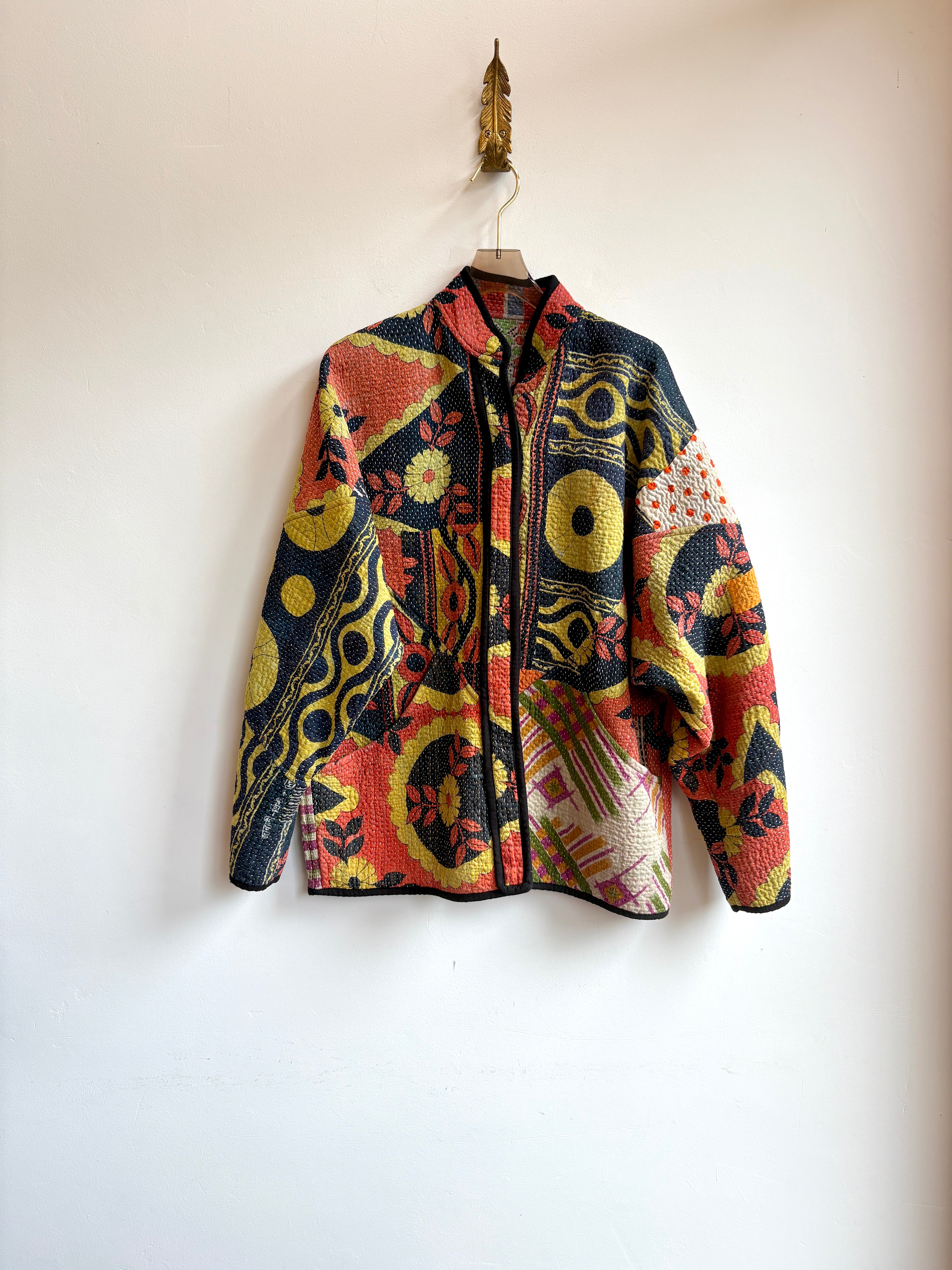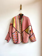 This Ladhiya Jacket is made from repurposed Vintage Kantha quilts, and the original patina includes areas of fraying, patches and an age-softened feel.