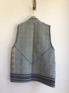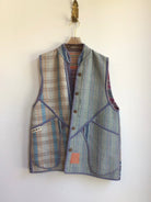 The Ladhiya vest is made from repurposed Vintage Kantha quilts, and the original patina includes areas of fraying, patches and an age-softened feel.
