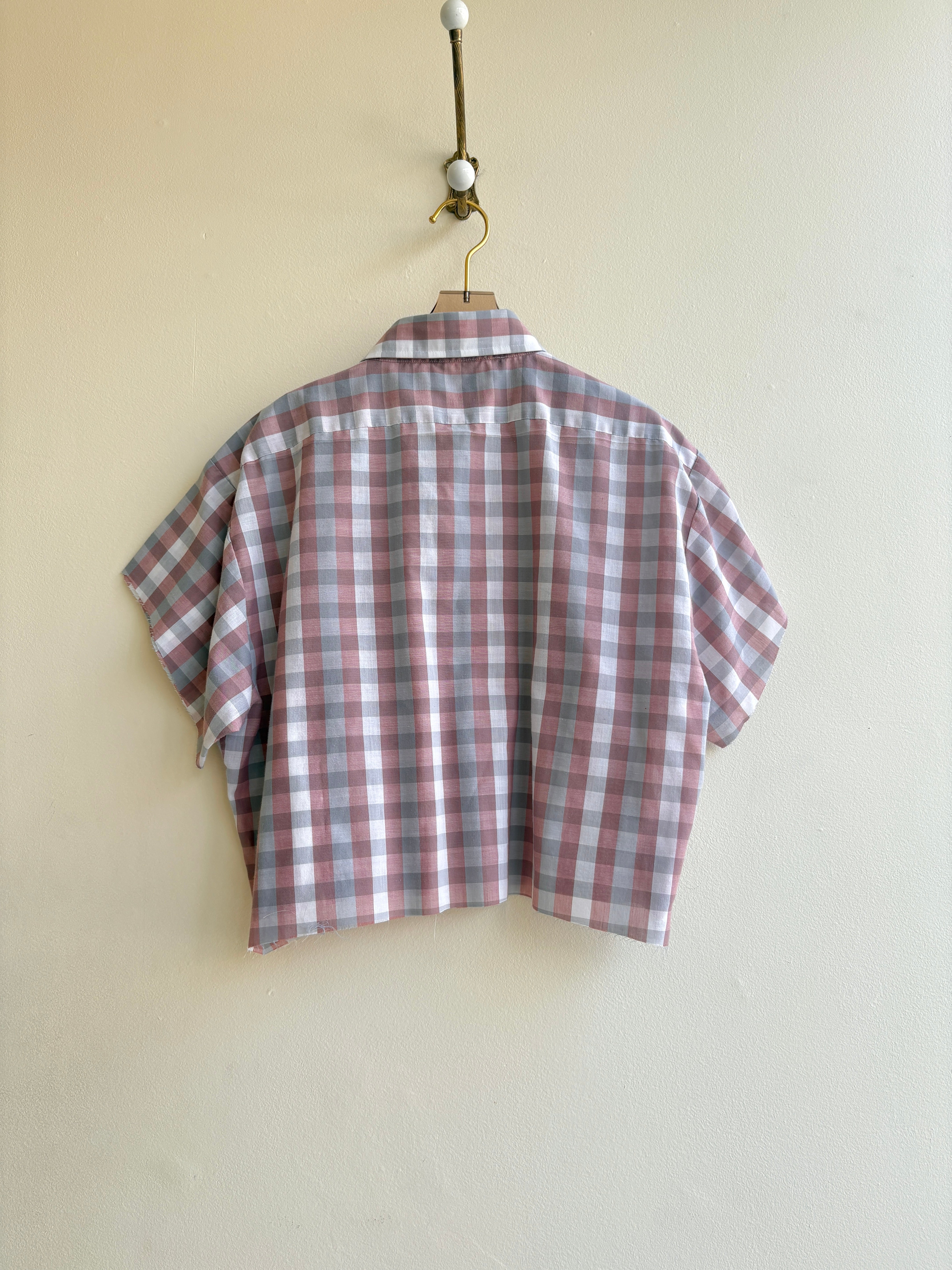Salmon Plaid Short Sleeve Annette Crop Top (Reworked)