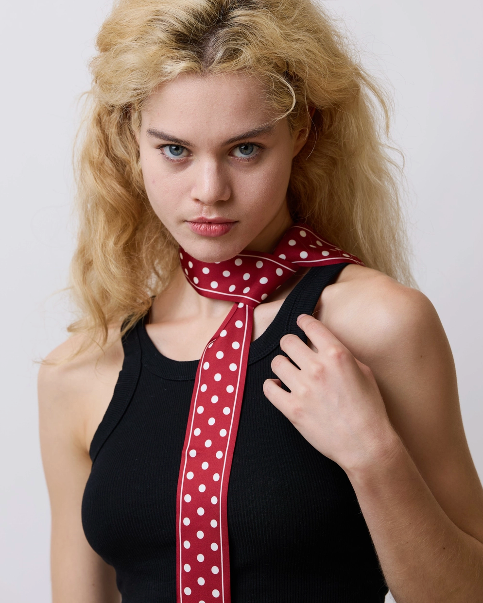 Classic polka dots meet a deep, Burgundy for a look that’s both striking and timeless.