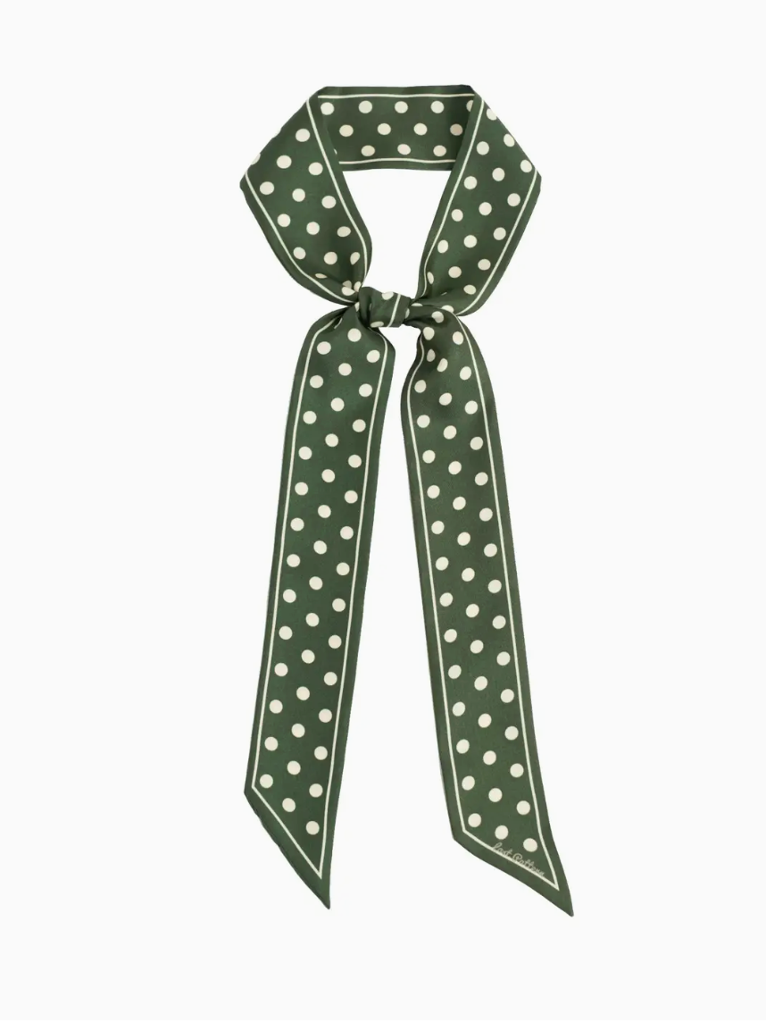 Classic polka dots meet a deep, retro green for a look that’s both striking and timeless.