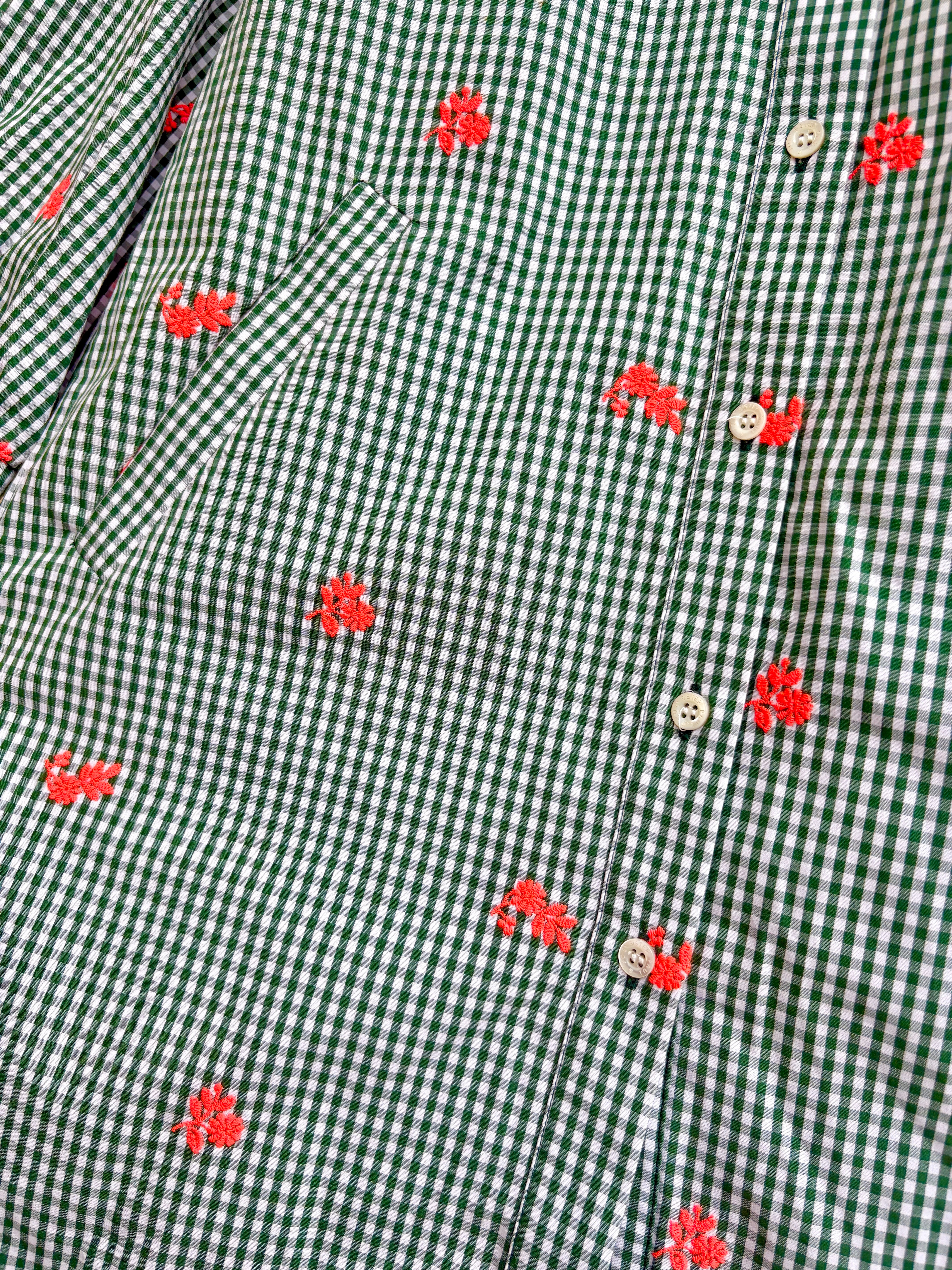 Sister Paul & Joe | Green Gingham Dress w/ Neon Orange Roses (Vintage)