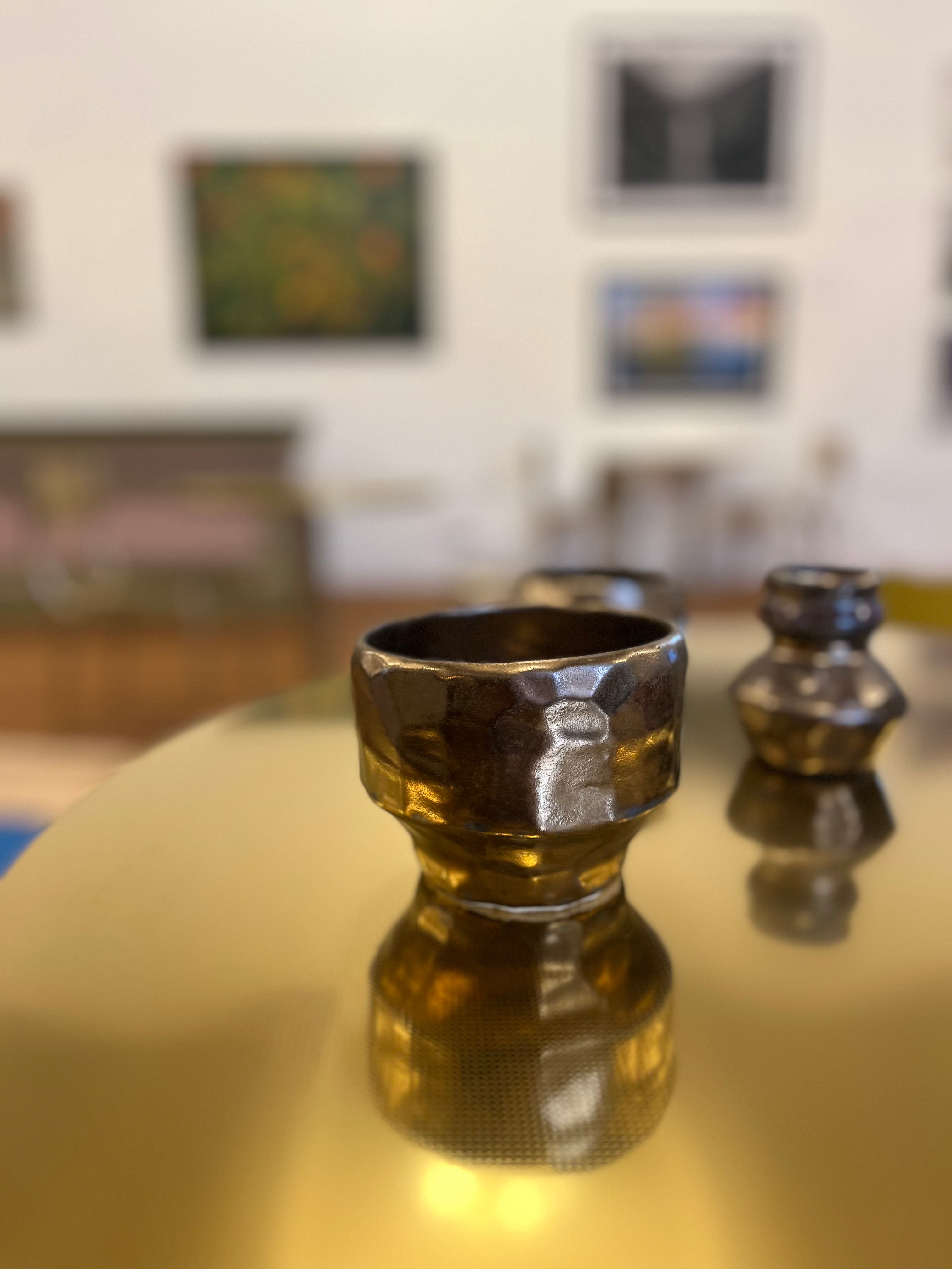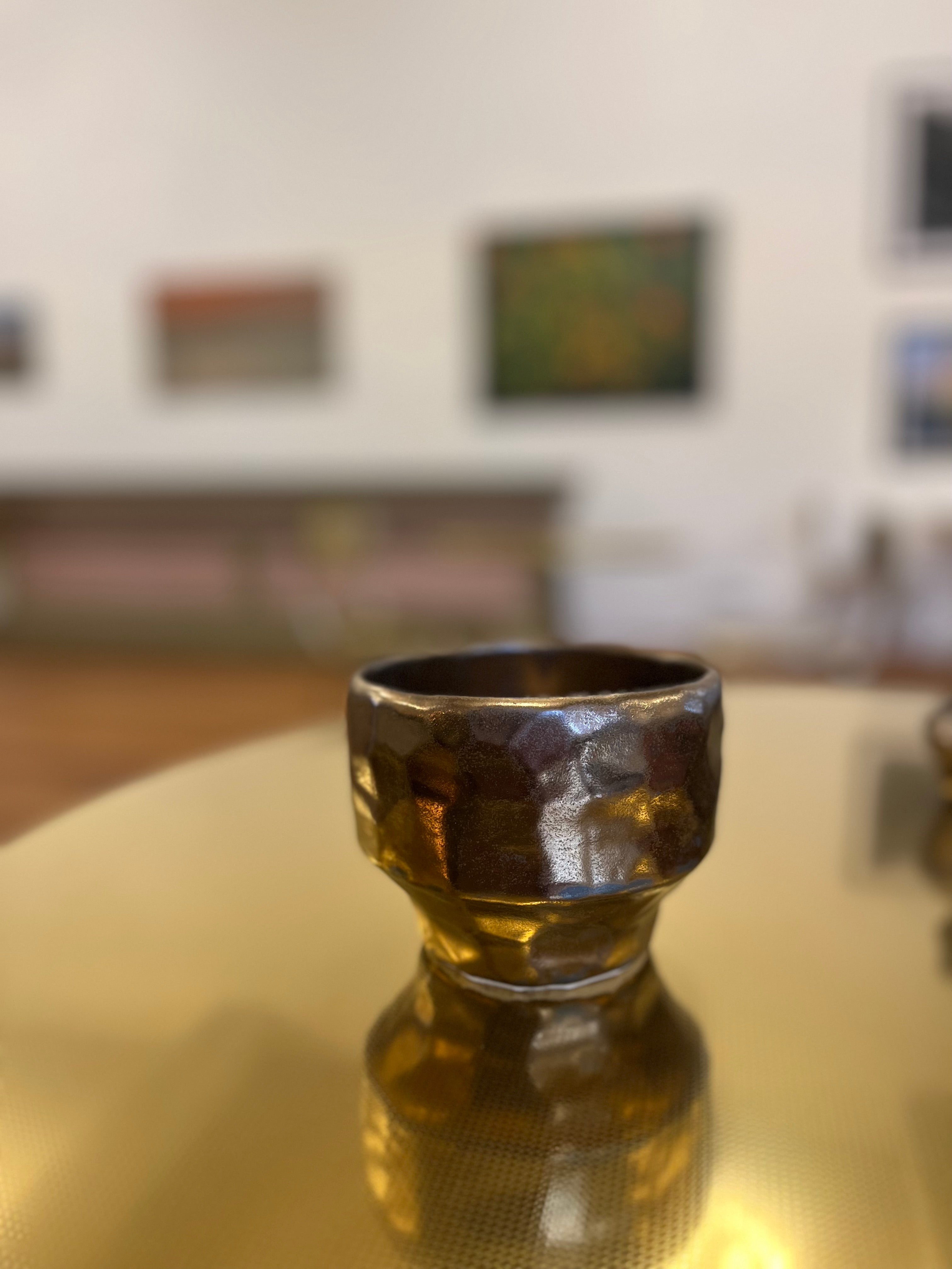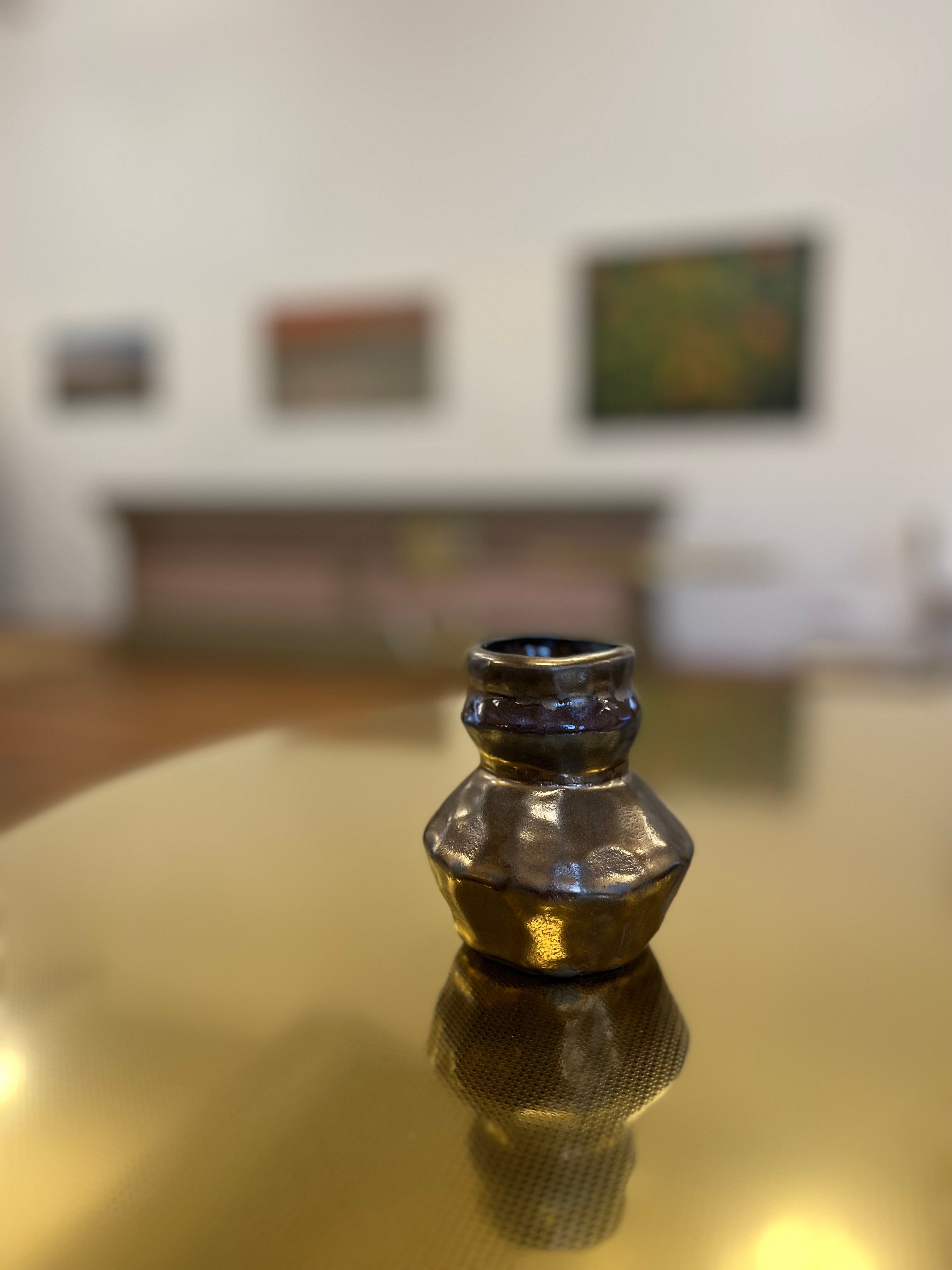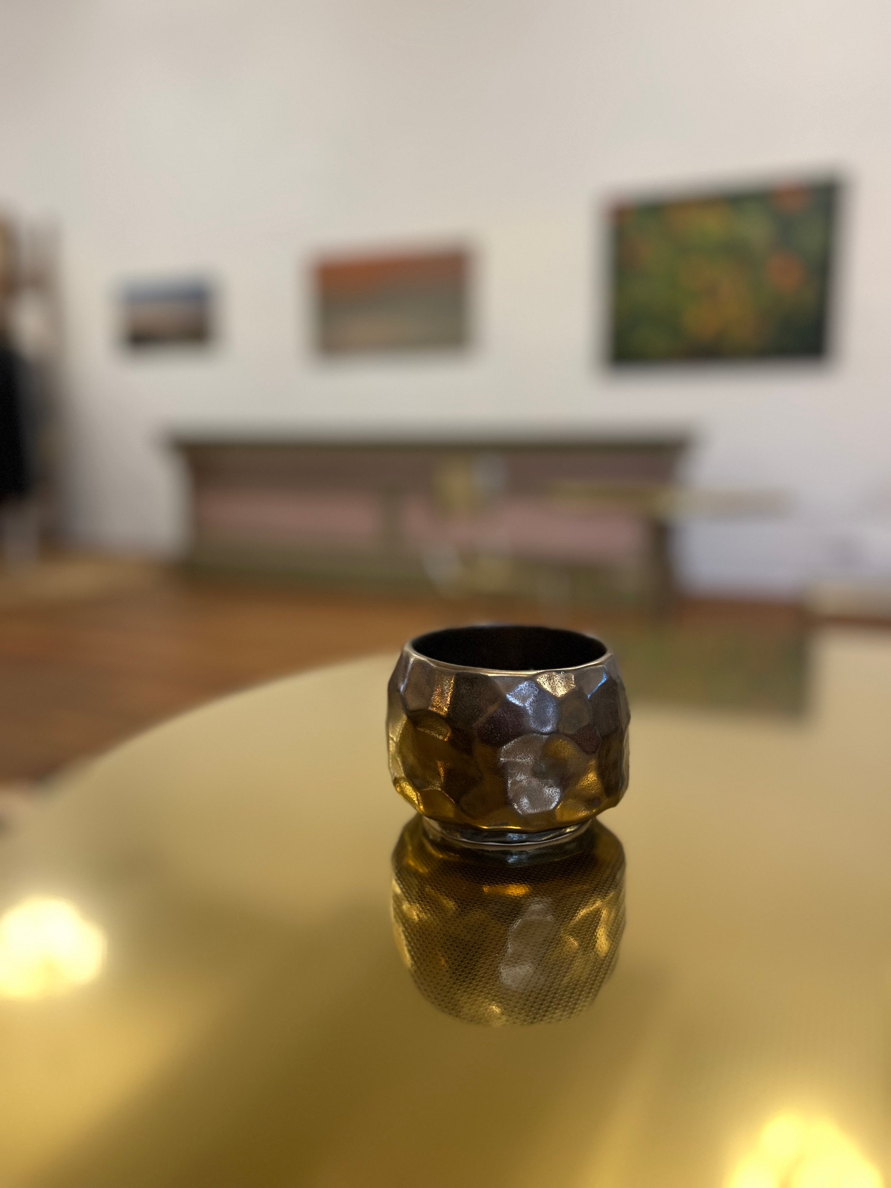 | 544- Gold Matte Pot Round w/ Dimples + Base |