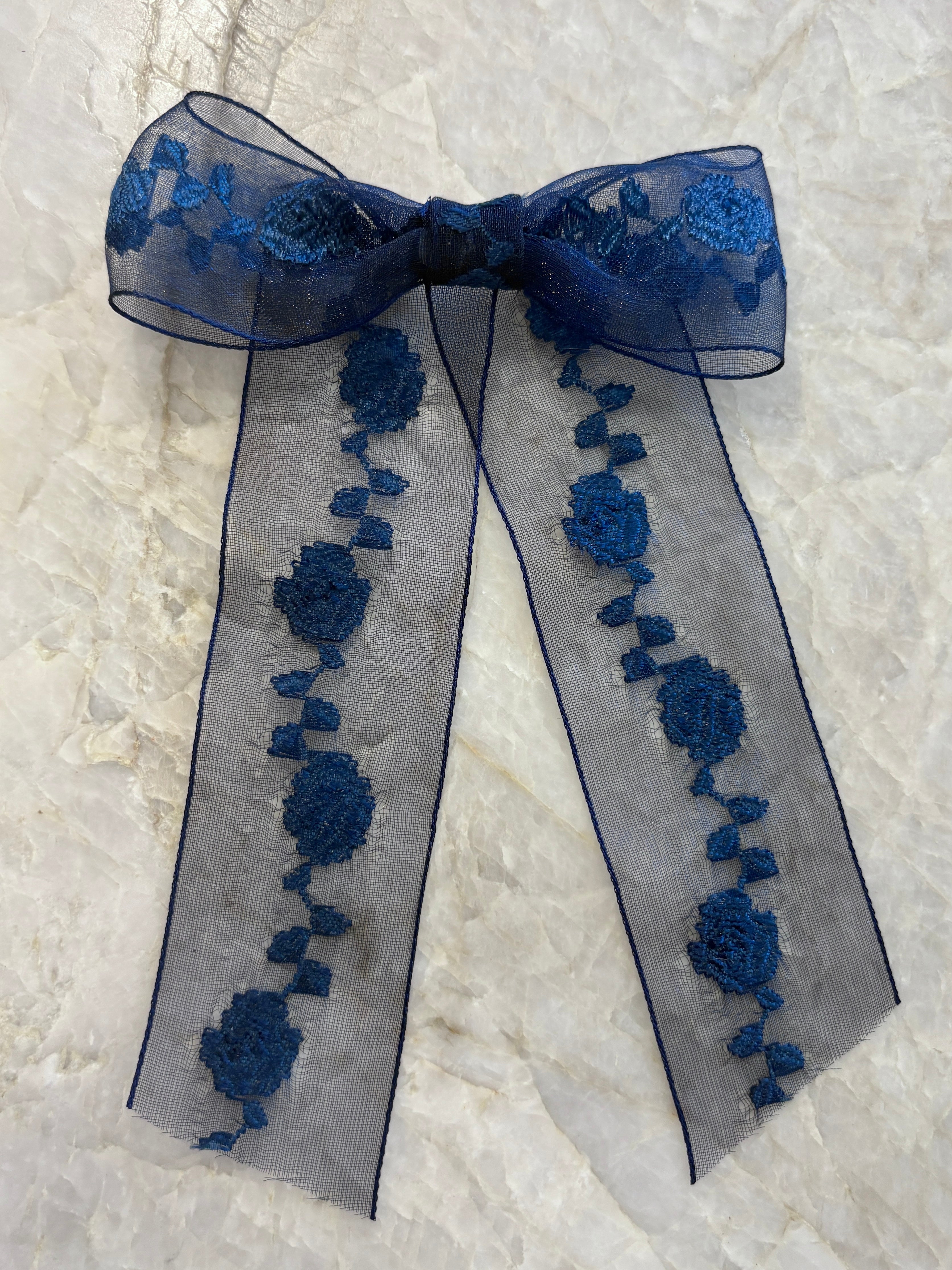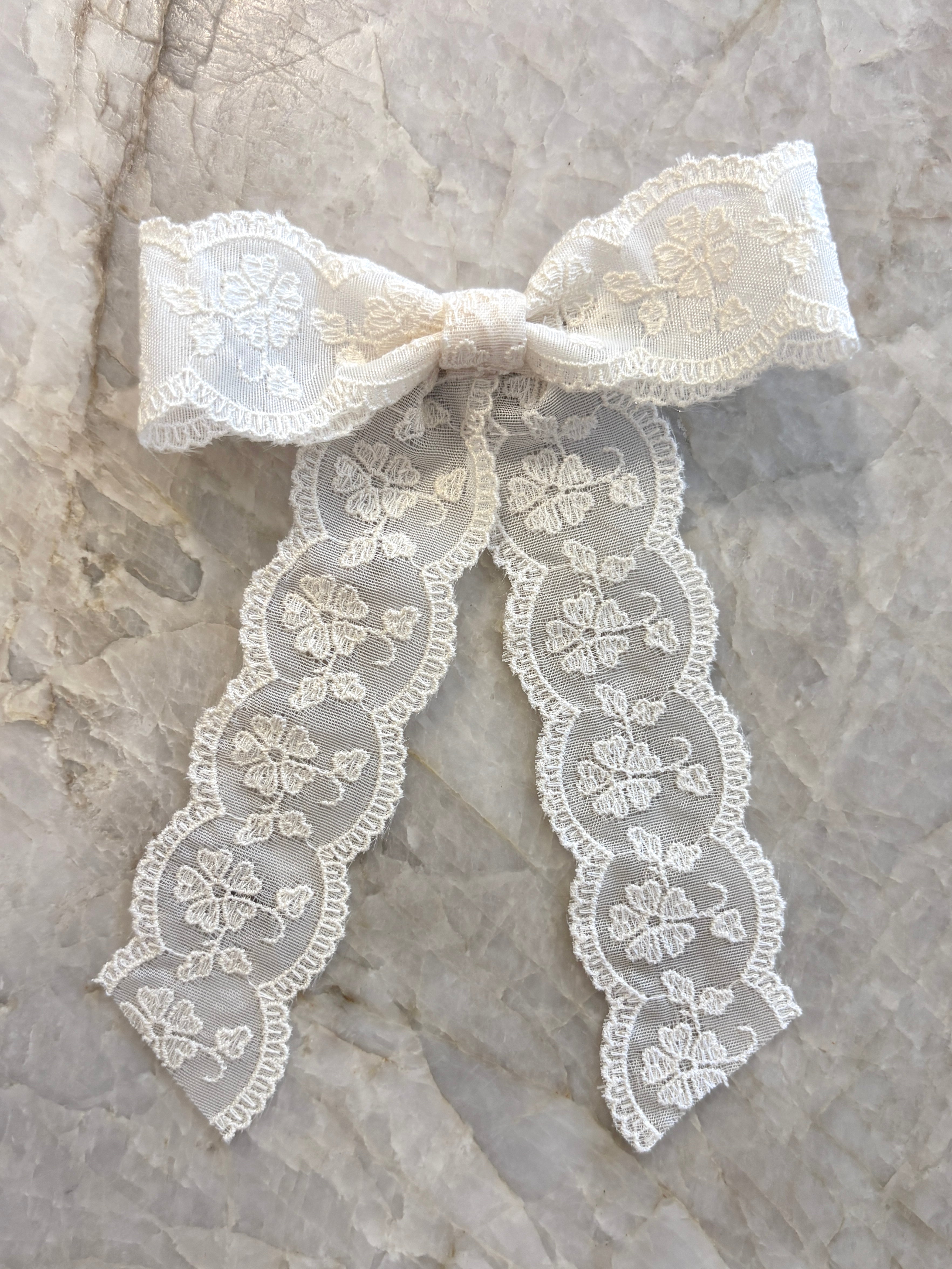 Clip-in hair bows, handmade from lace ribbon with alligator clip. Each bow is approx 4" wide and 6" tall, sold individually.