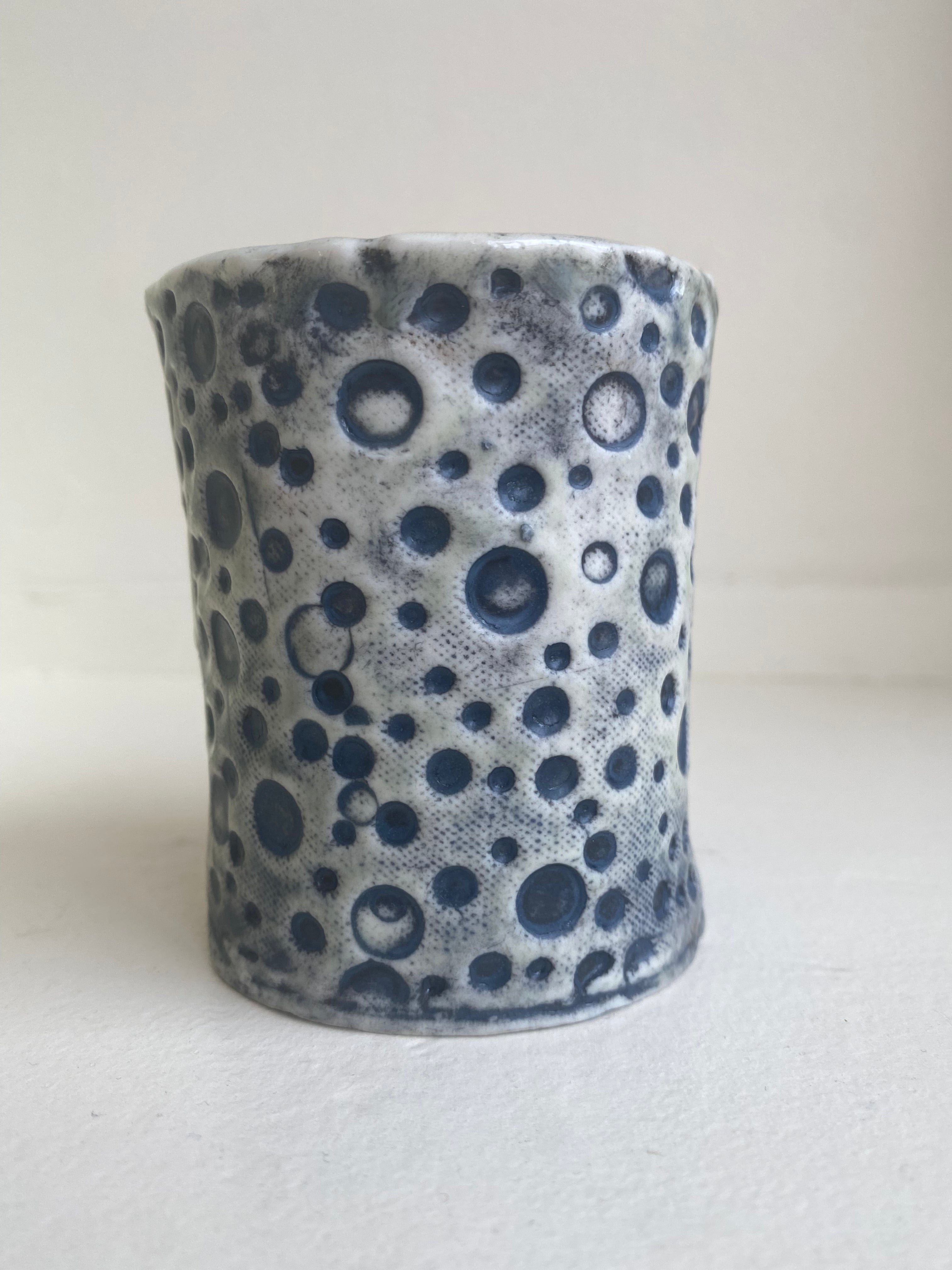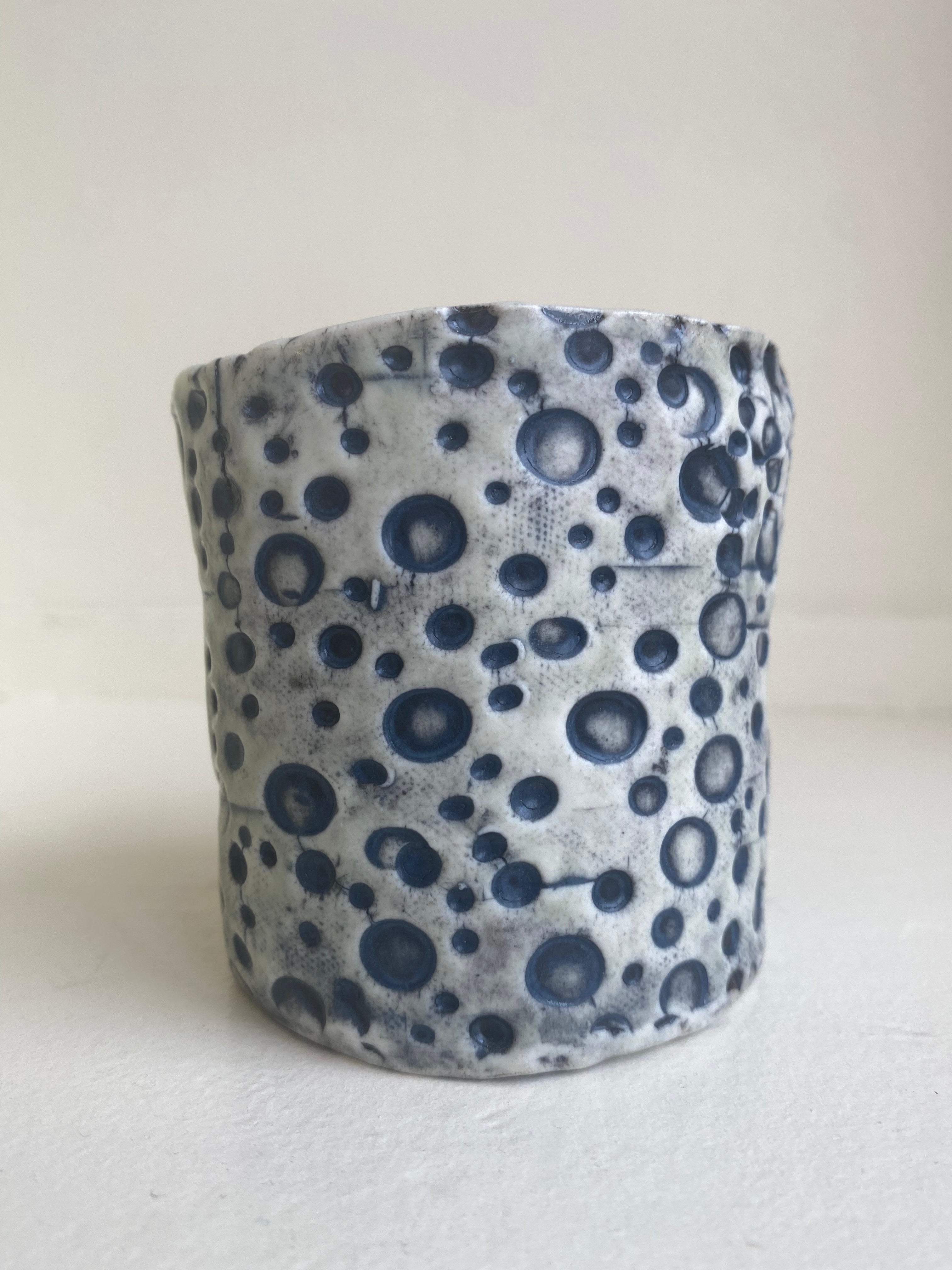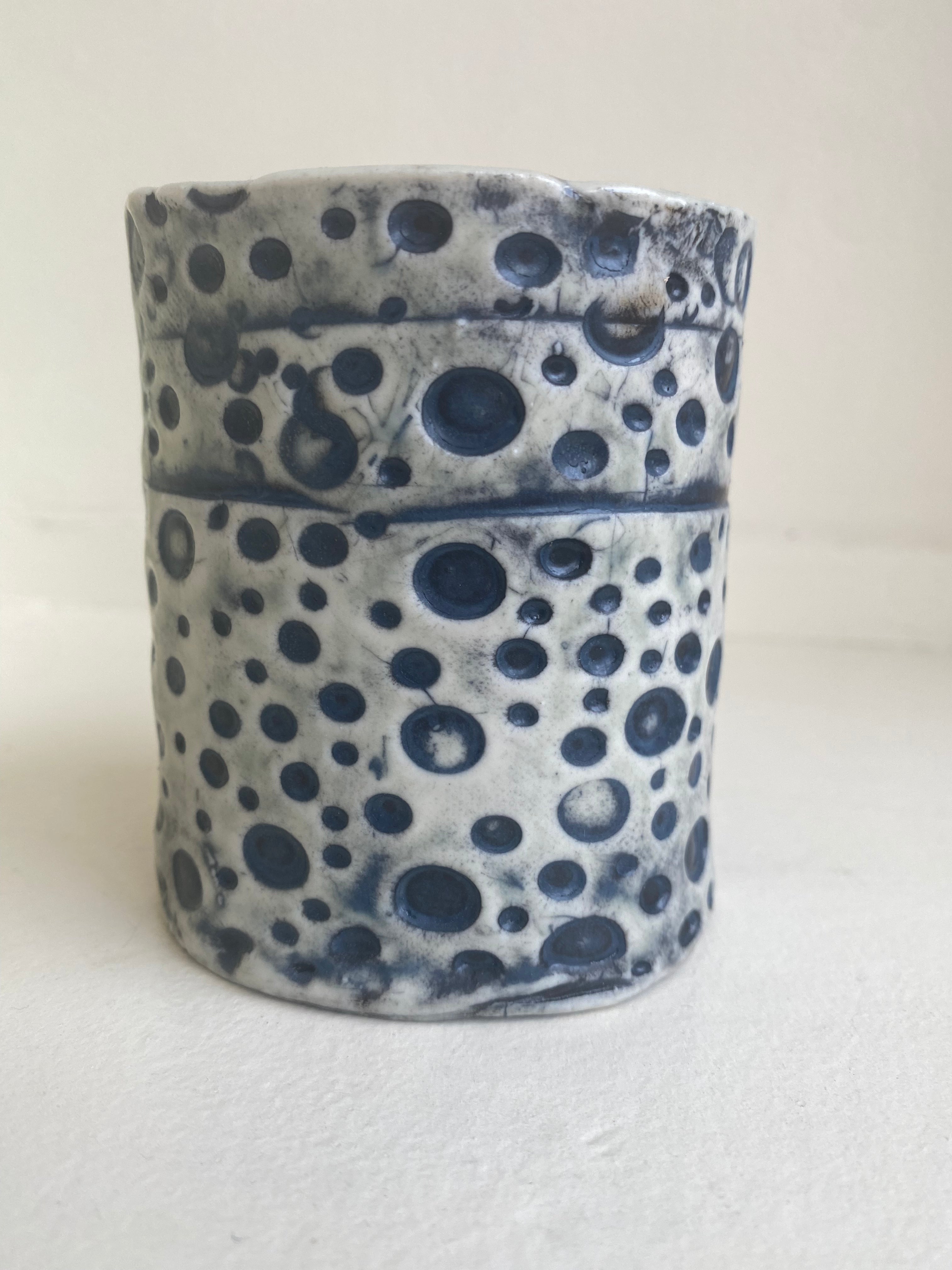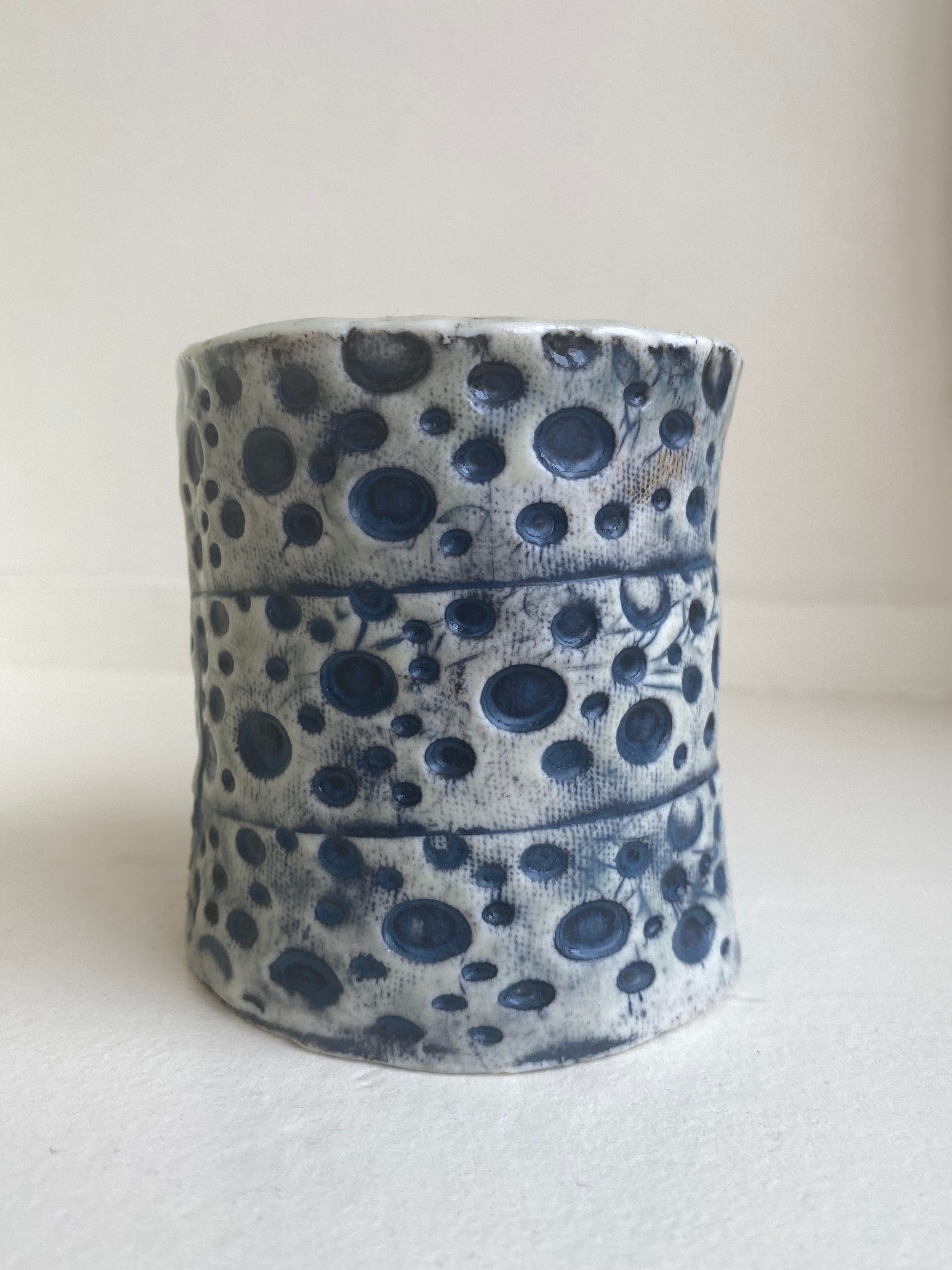 Add a touch of whimsy to your morning coffee with these expertly crafted with unique one of a kind designs hand-carved Spotted Mugs by Laura Ann Jacobs Ceramics. Made in Hudson, New York, this women-owned business brings charm and personality to your daily routine.