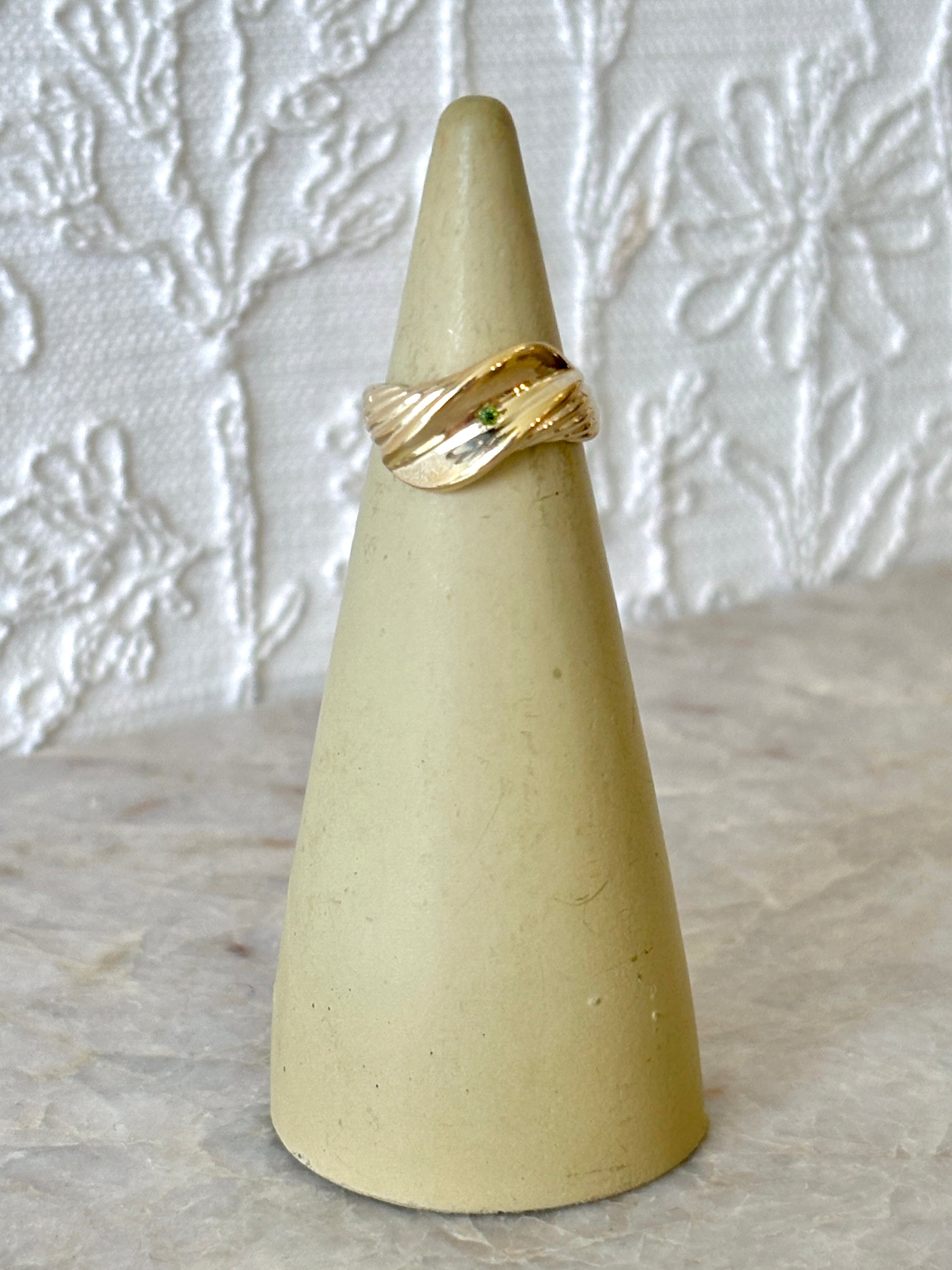 Open Croissant Ring w/ Small Chrome Diopside Stone | Sterling Silver & Brass (Matte or Polished)