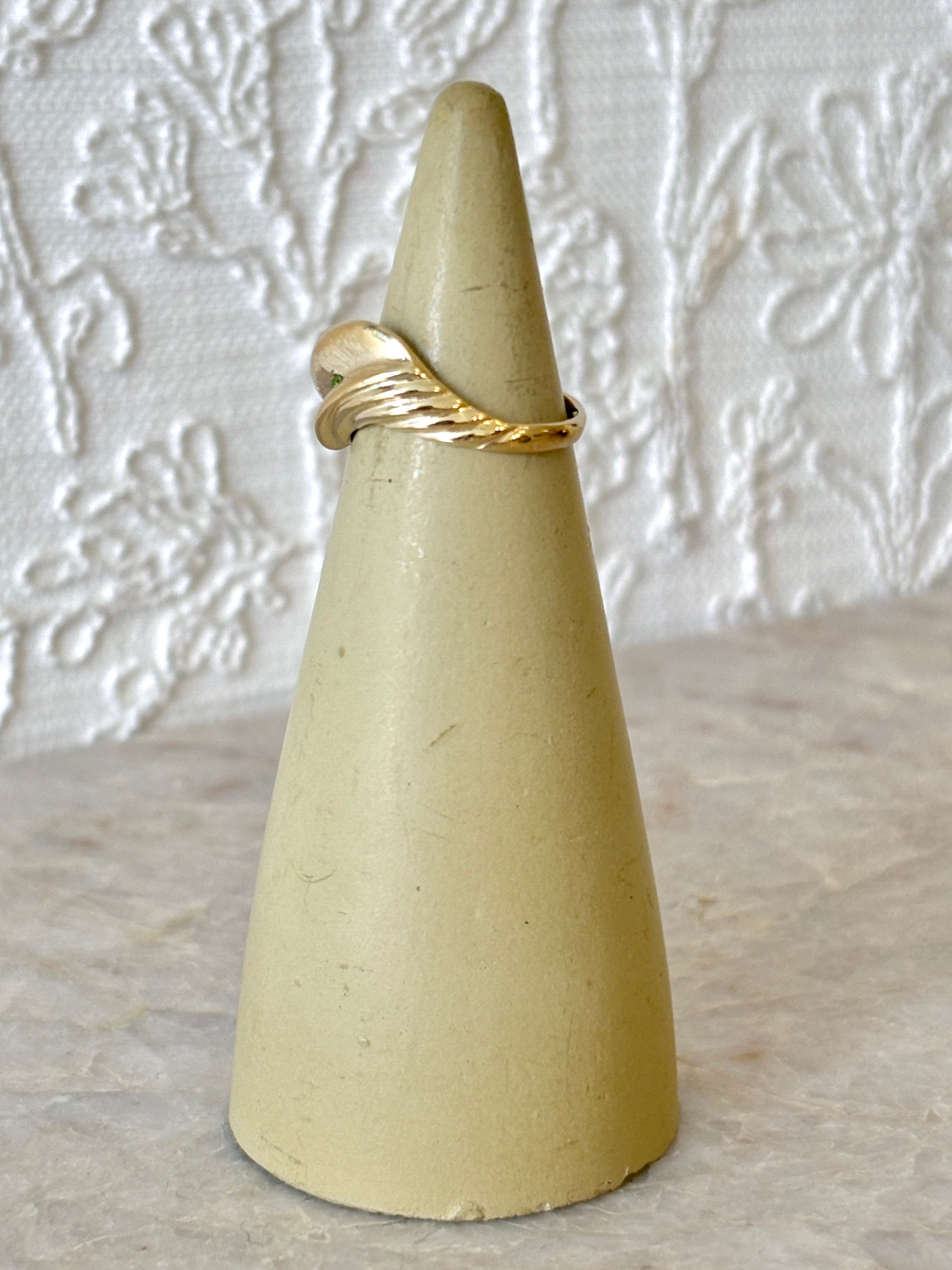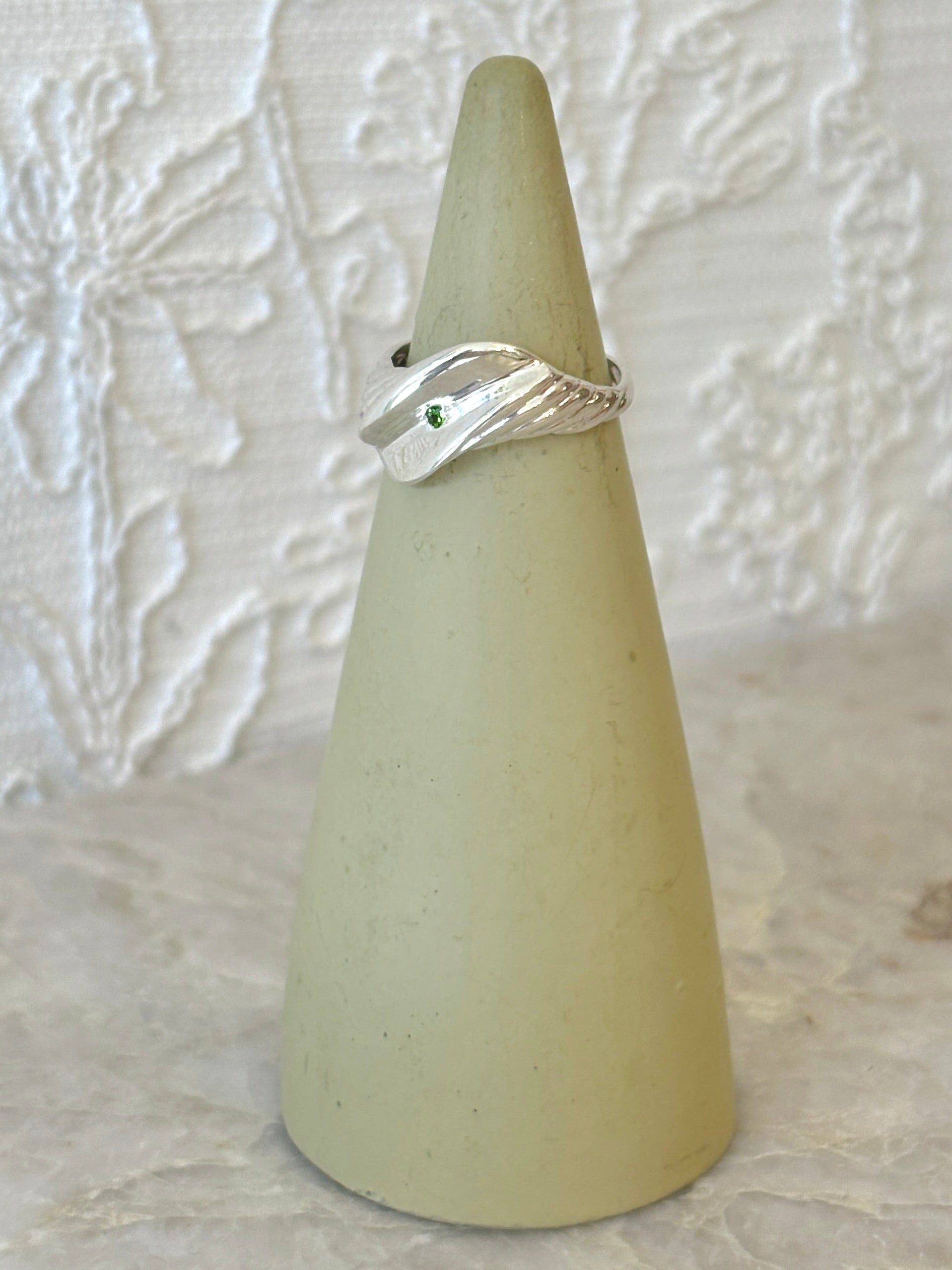 Open Croissant Ring w/ Small Chrome Diopside Stone | Sterling Silver & Brass (Matte or Polished)