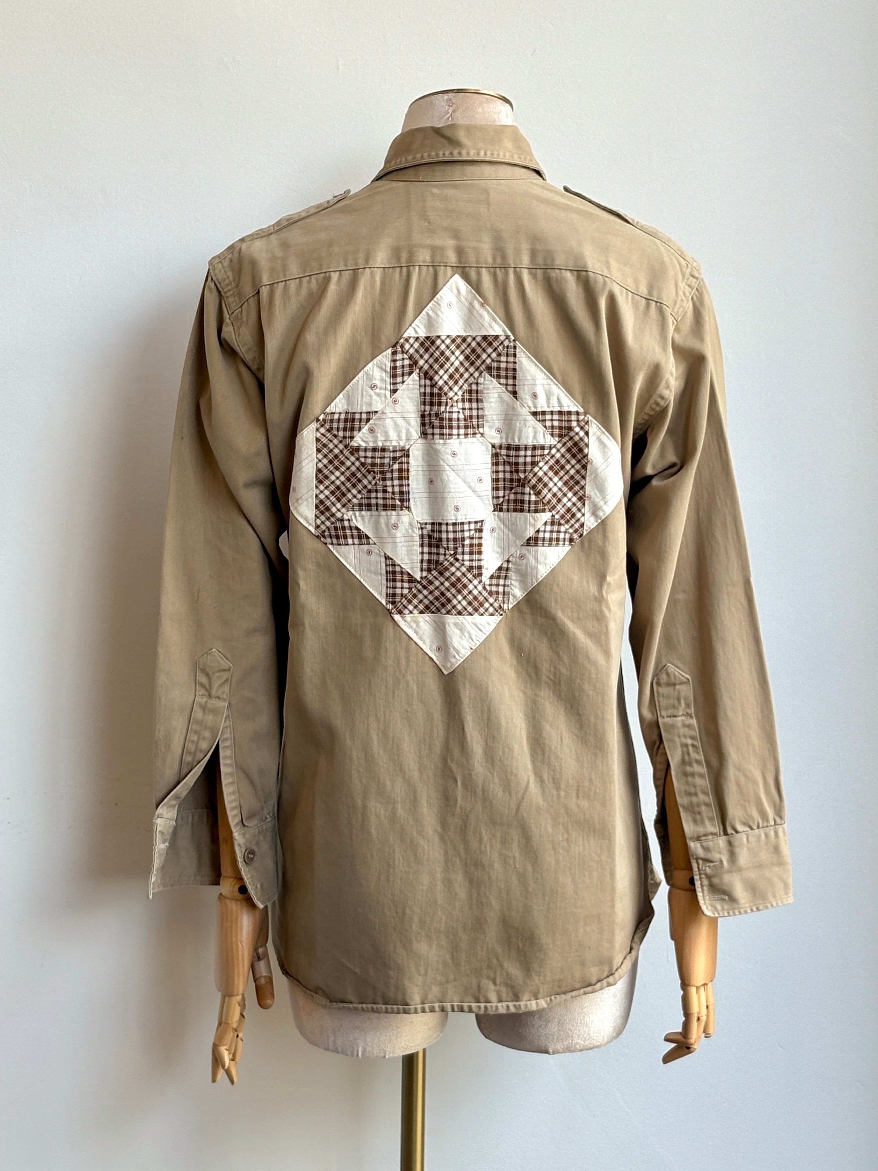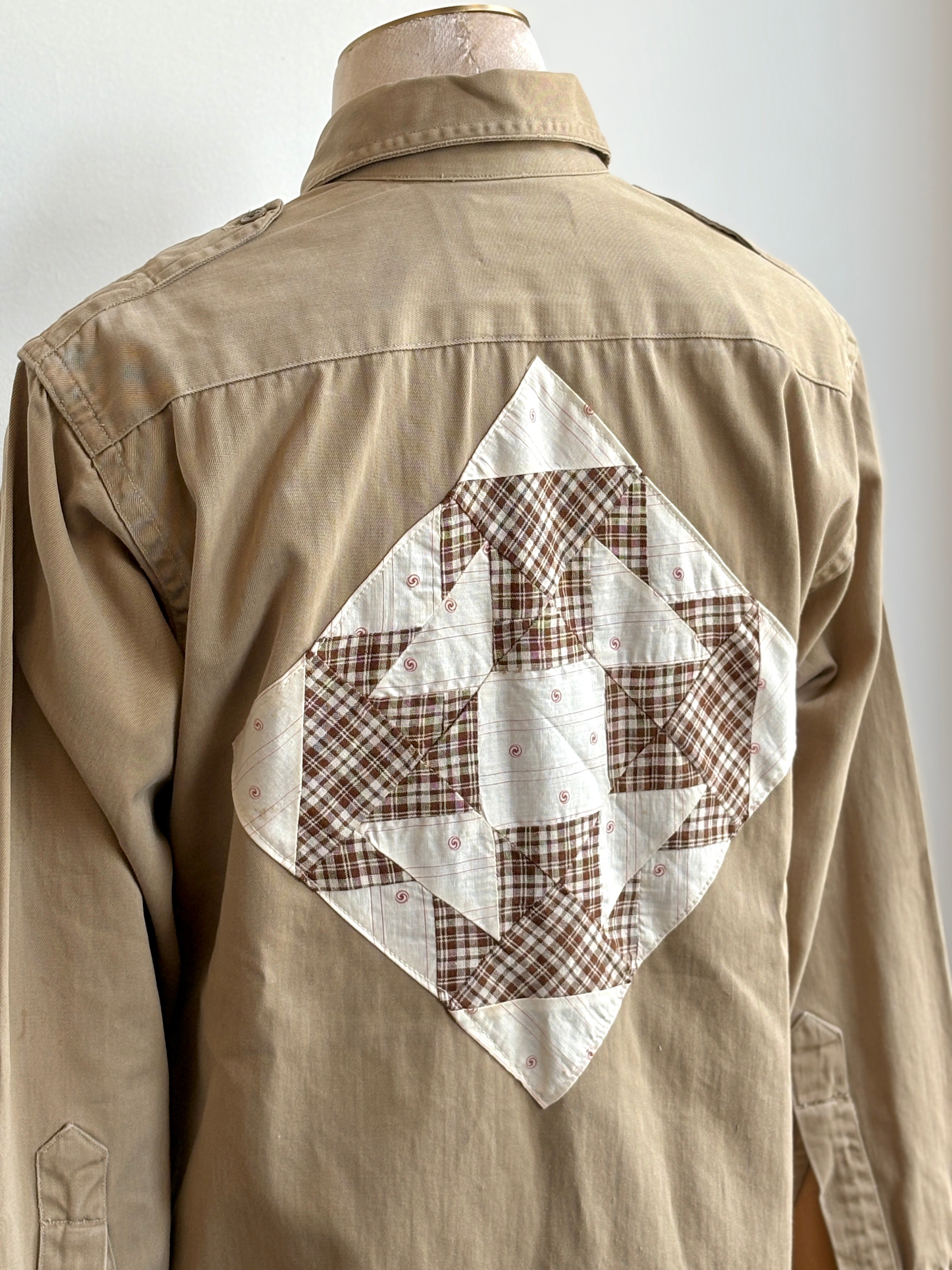 Tan Military Shirt w/ Quilt Patch (Reworked)