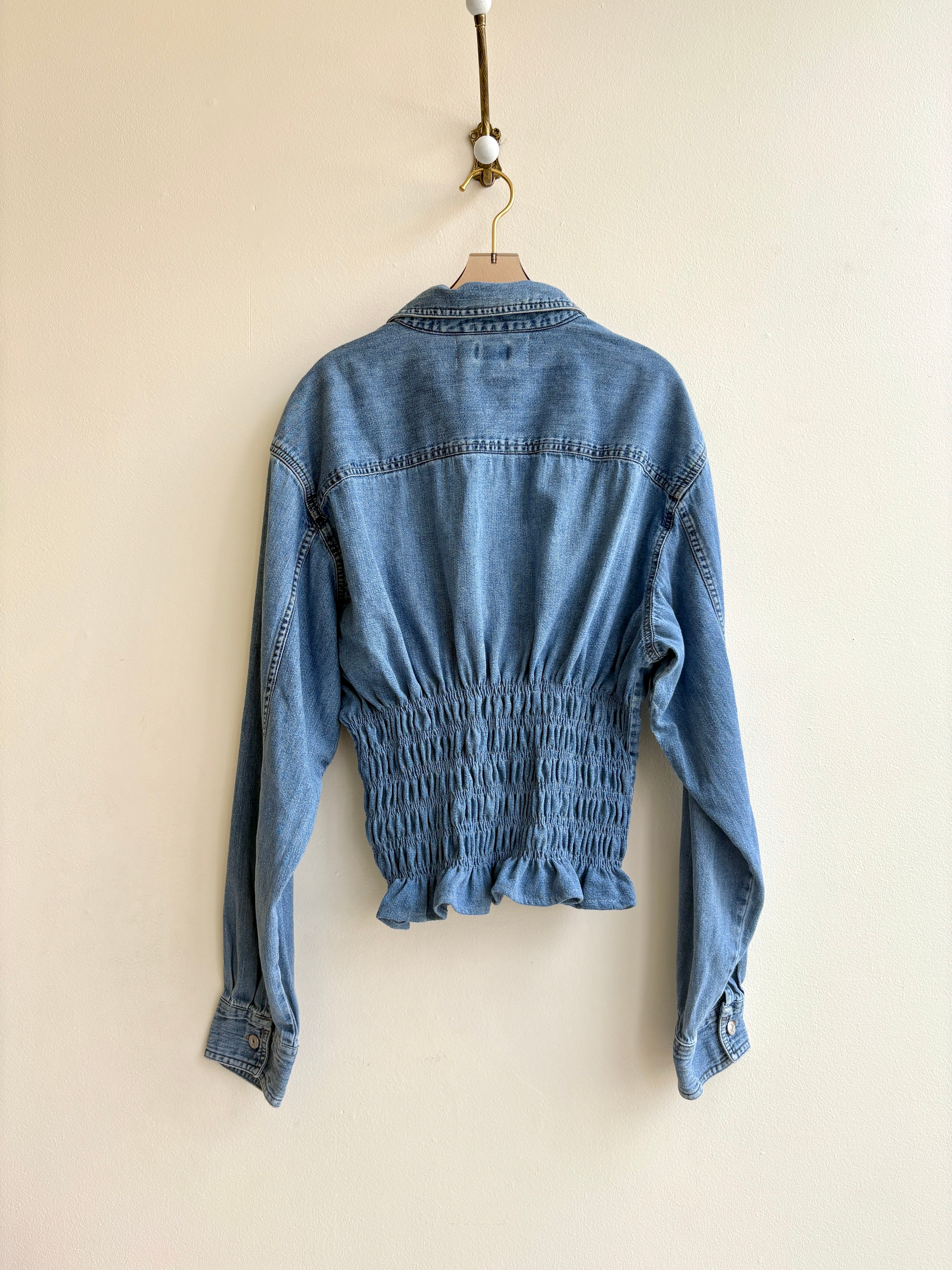The George Top | Blue Denim Button Down Top w/ Smocked Waist (Reworked)