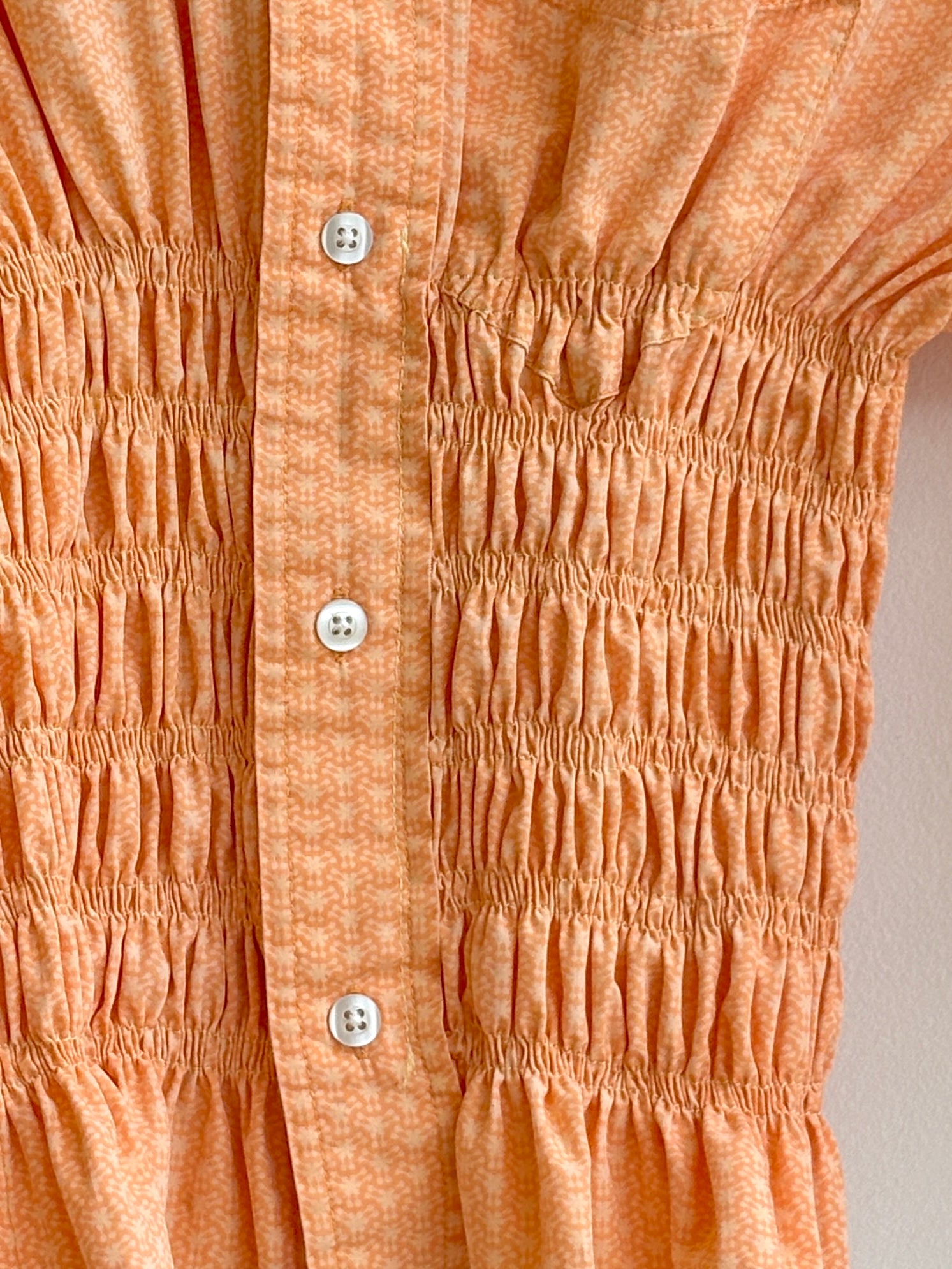 The George Top | Orange Retro Print Button Down Top w/ Smocked Waist (Reworked)