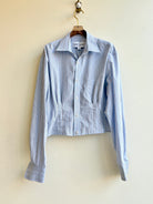 The Kevin Top | Brown, Blue & White Stripe Top w/ Gathered Waist (Reworked)