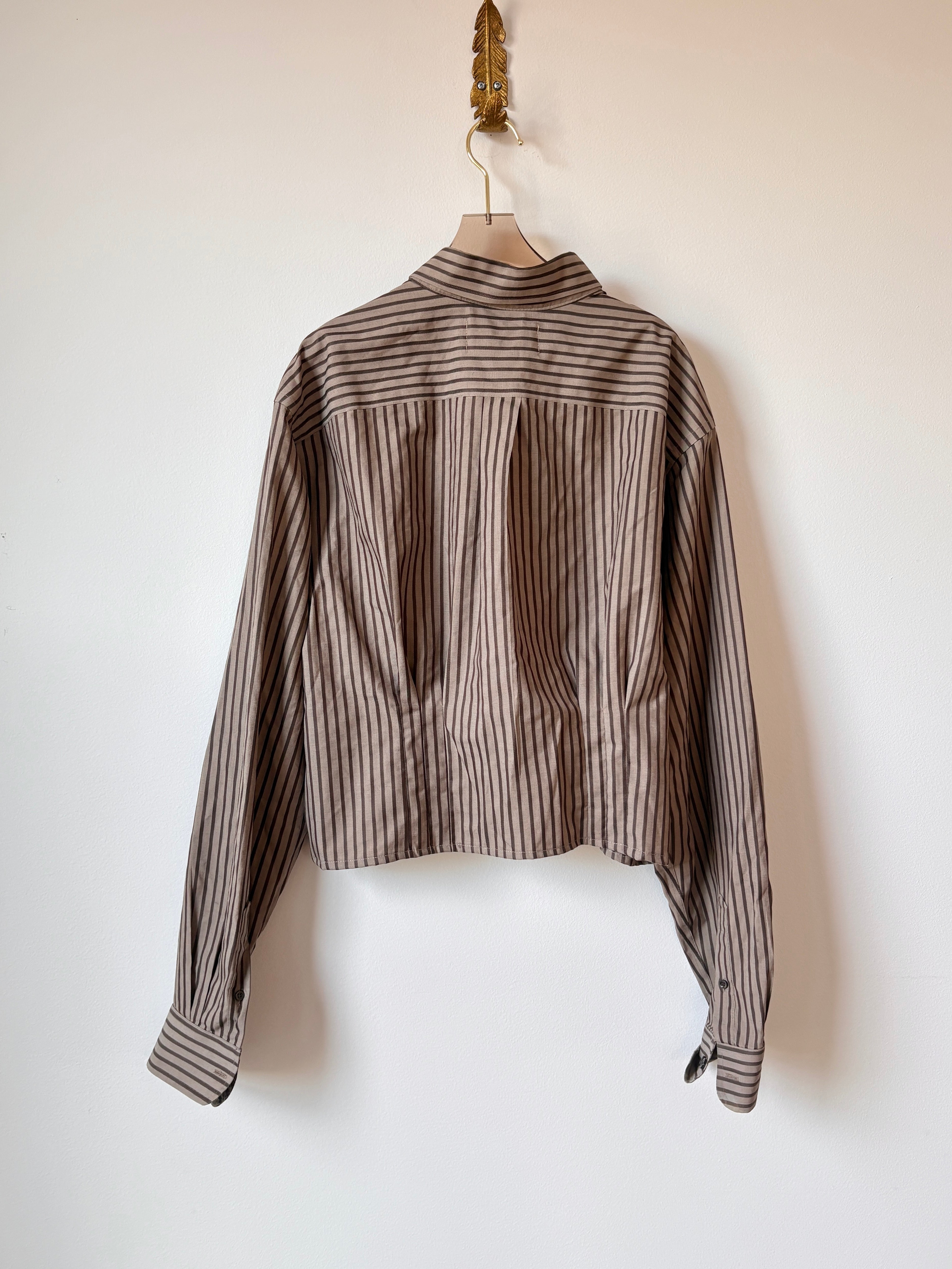 The Kevin Top | Mocha w/ Brown Stripes Button Down Top w/ Gathered Waist (Reworked)