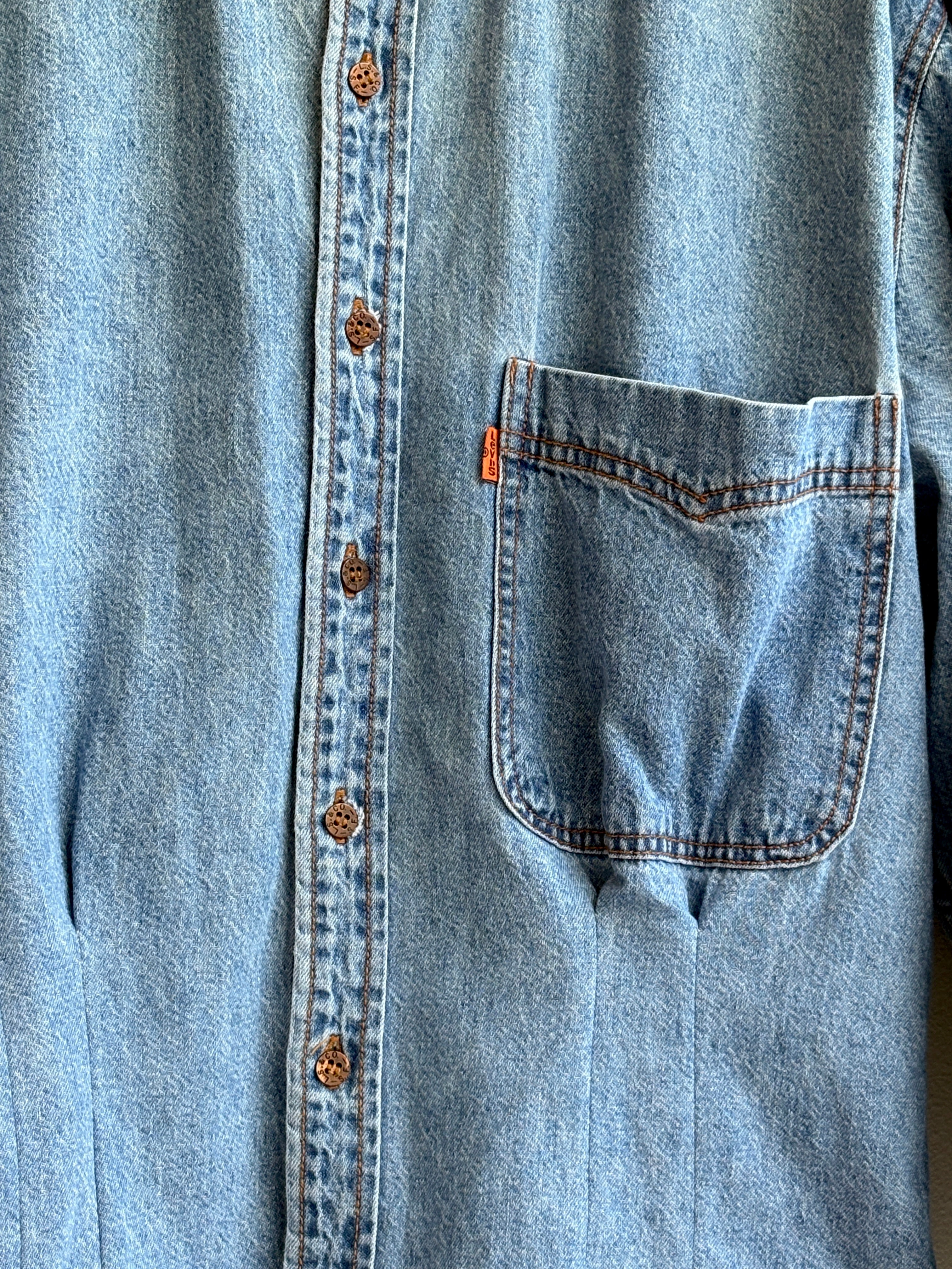 - Vintage denim blue & copper buttons
