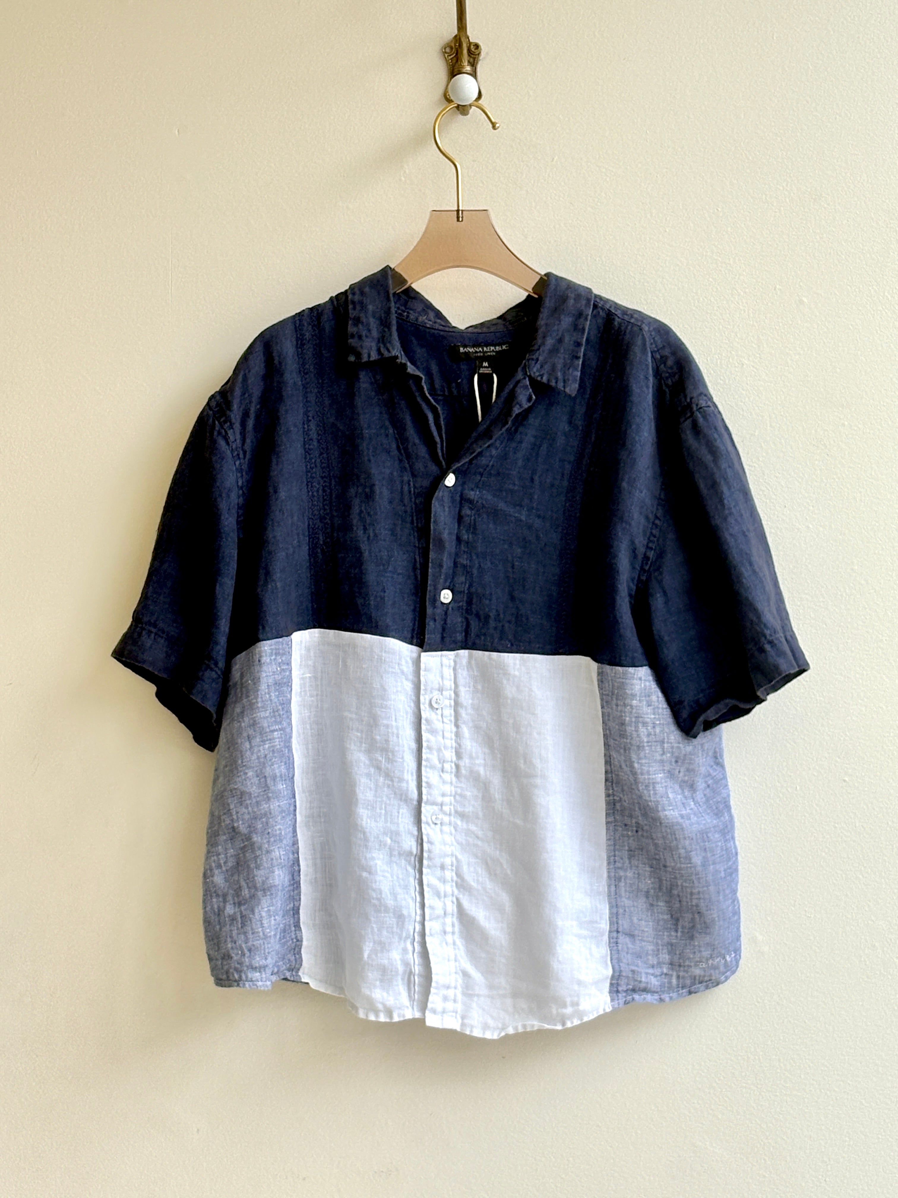 Three Tone Everyday Button Down Short Sleeve Top (Reworked)