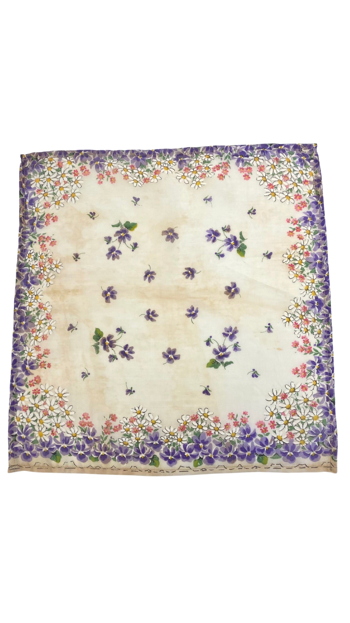 Vintage 1960s Silk Flowers Hanky (Violet)