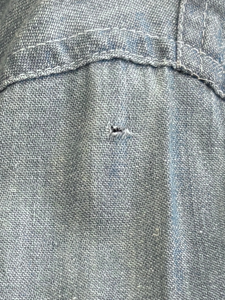 - Has small hole on top right shoulder & slight hole on top of left arm by shoulder seam