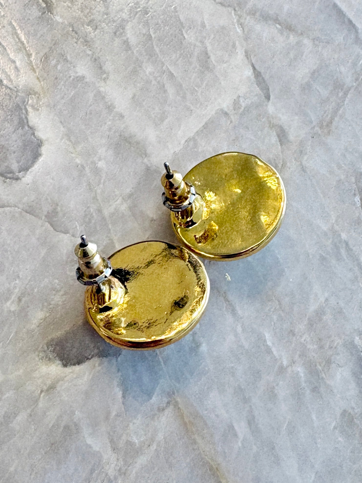Pearl Earrings w/ Gold Tone Border (Vintage)
