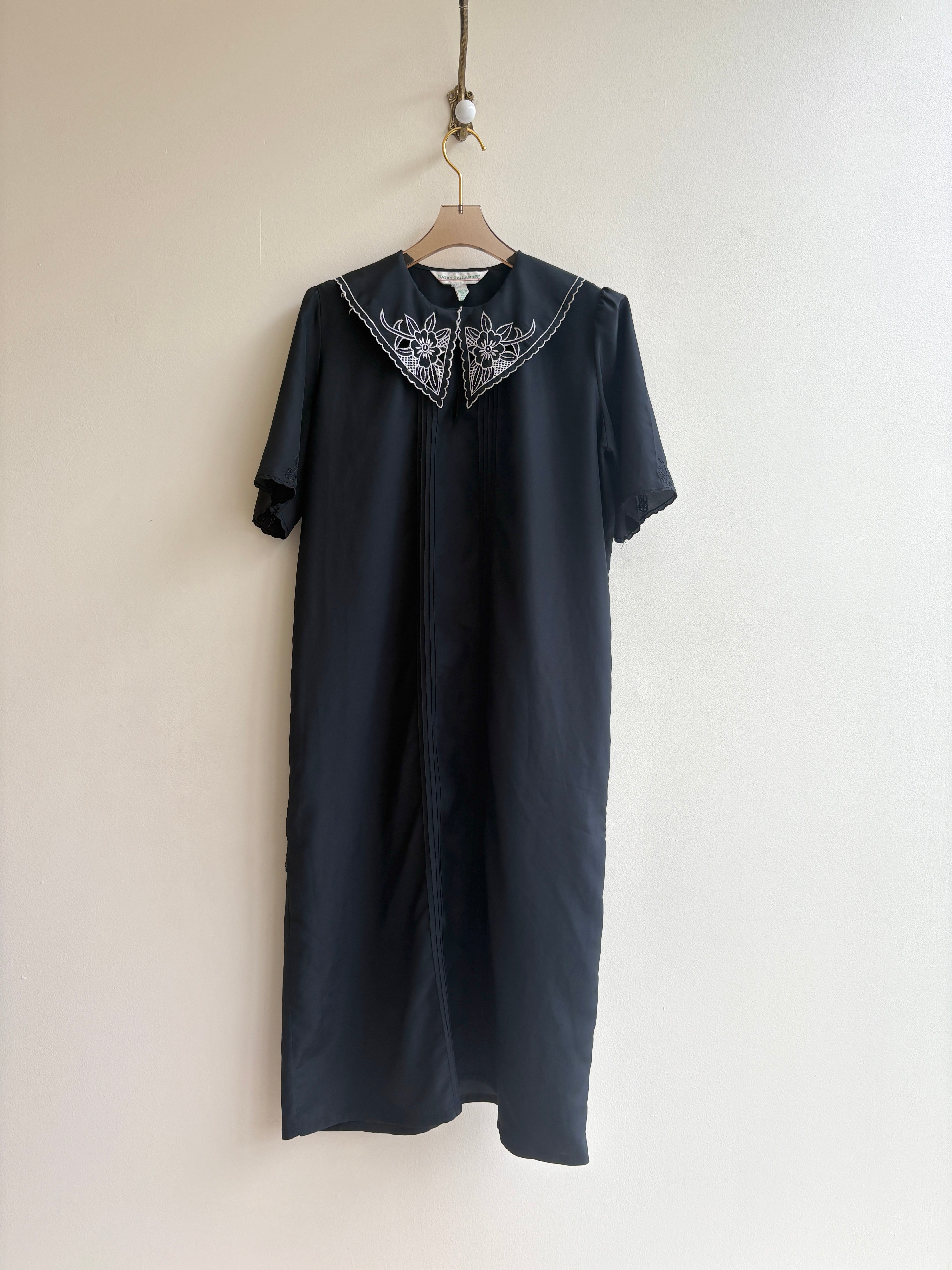 “Wednesday’s” Black Dress with Embroidered Collar (Vintage)