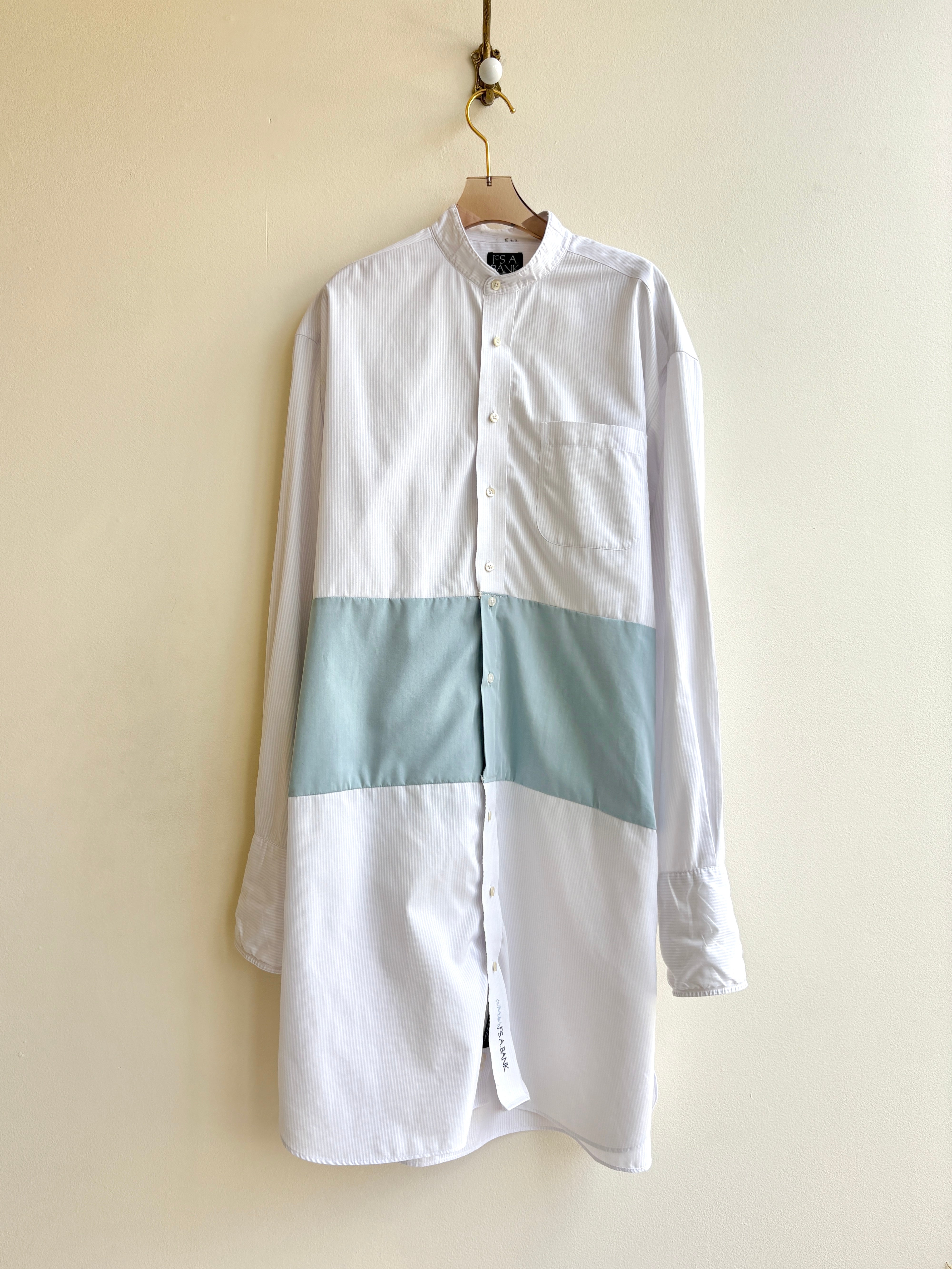 White Stripe & Seafoam Long Sleeve Des Dress (Reworked)