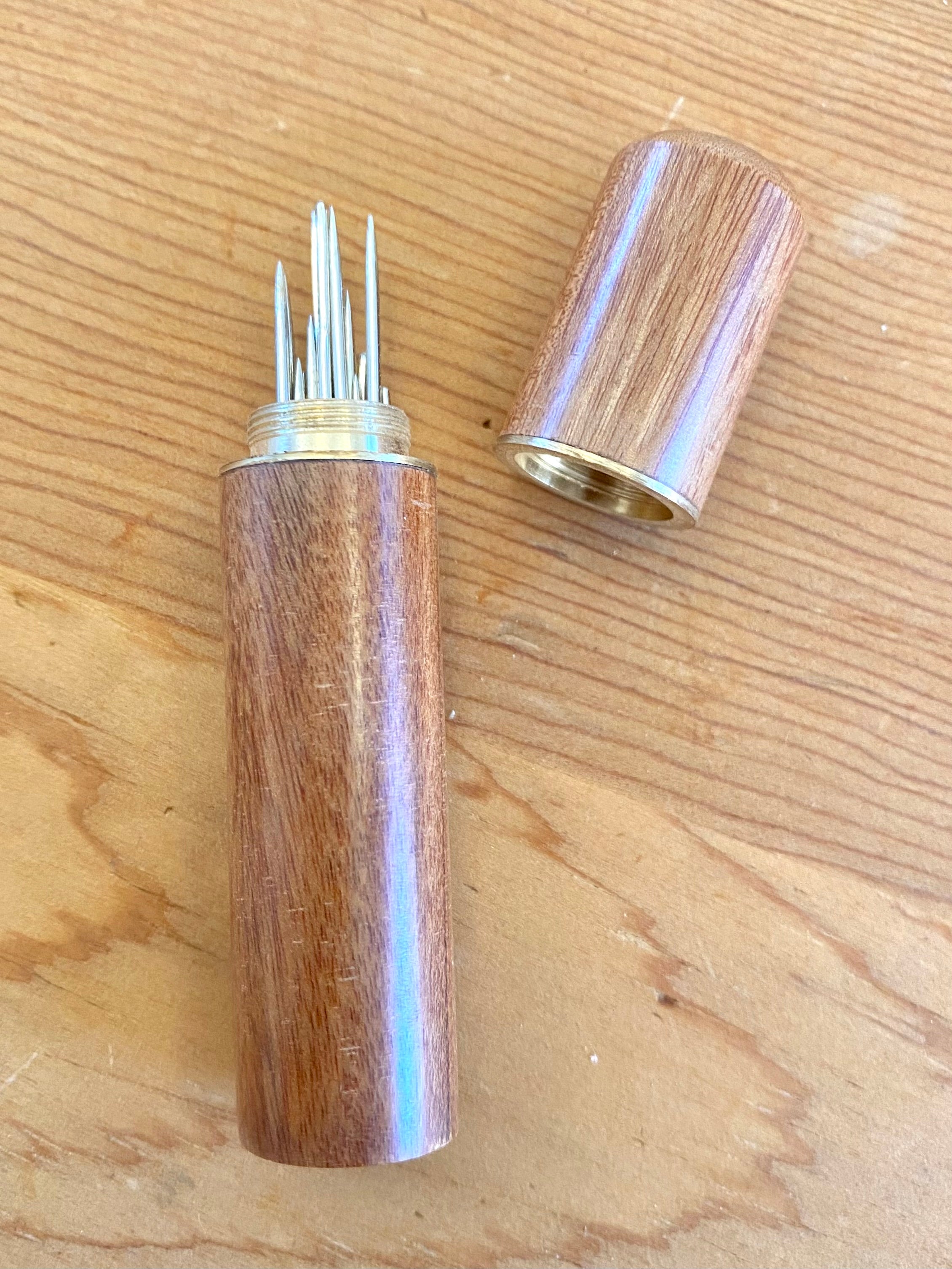 Keep your needles organized and secure with our Wood Blind Needle Case. Made of high-quality wood with a stylish brass accent.