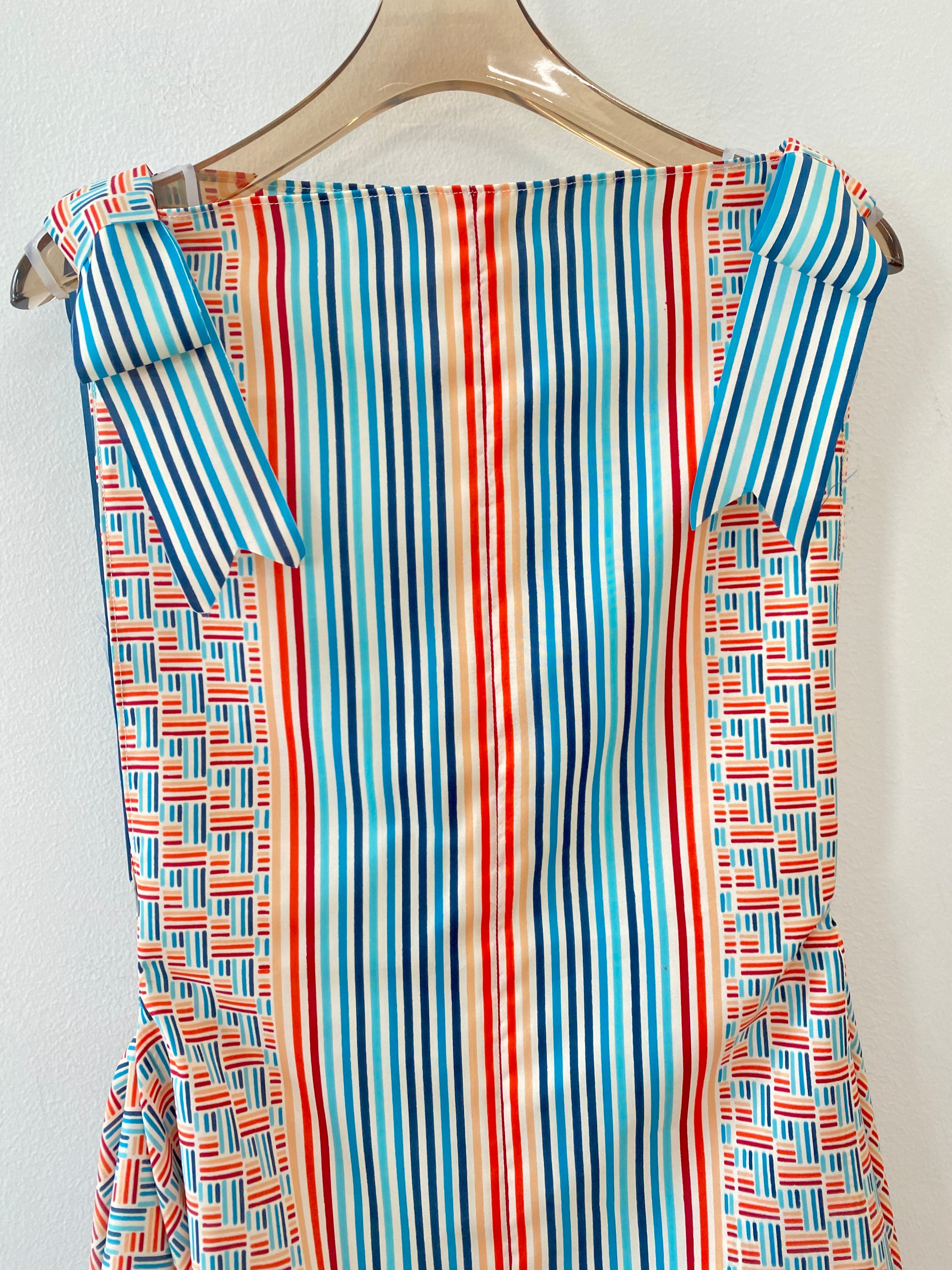 Zero Waste Blue & Orange Dress w/ Bow Accent Shoulder
