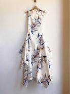 Our Zero-Waste Dress is so unabashedly pretty they tend to sell just as quickly as we can get one onto the floor. This one was sewn from a gorgeous tropical print fabric that feels like cotton.