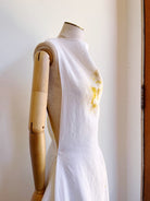 Our Zero-Waste Dress is so unabashedly pretty they tend to sell just as quickly as we can get one onto the floor. This one was sewn from organic white linen that has been locally dyed with sunflowers. Dress it up for a party or wedding, take it for a walk barefoot on a beach, or throw on a jean jacket and sneakers for a day out and about.